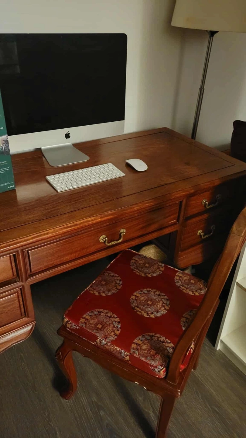 Antique desk and chair, still good condition just a little scratch on the corner (see photo) going for $10,000 online.