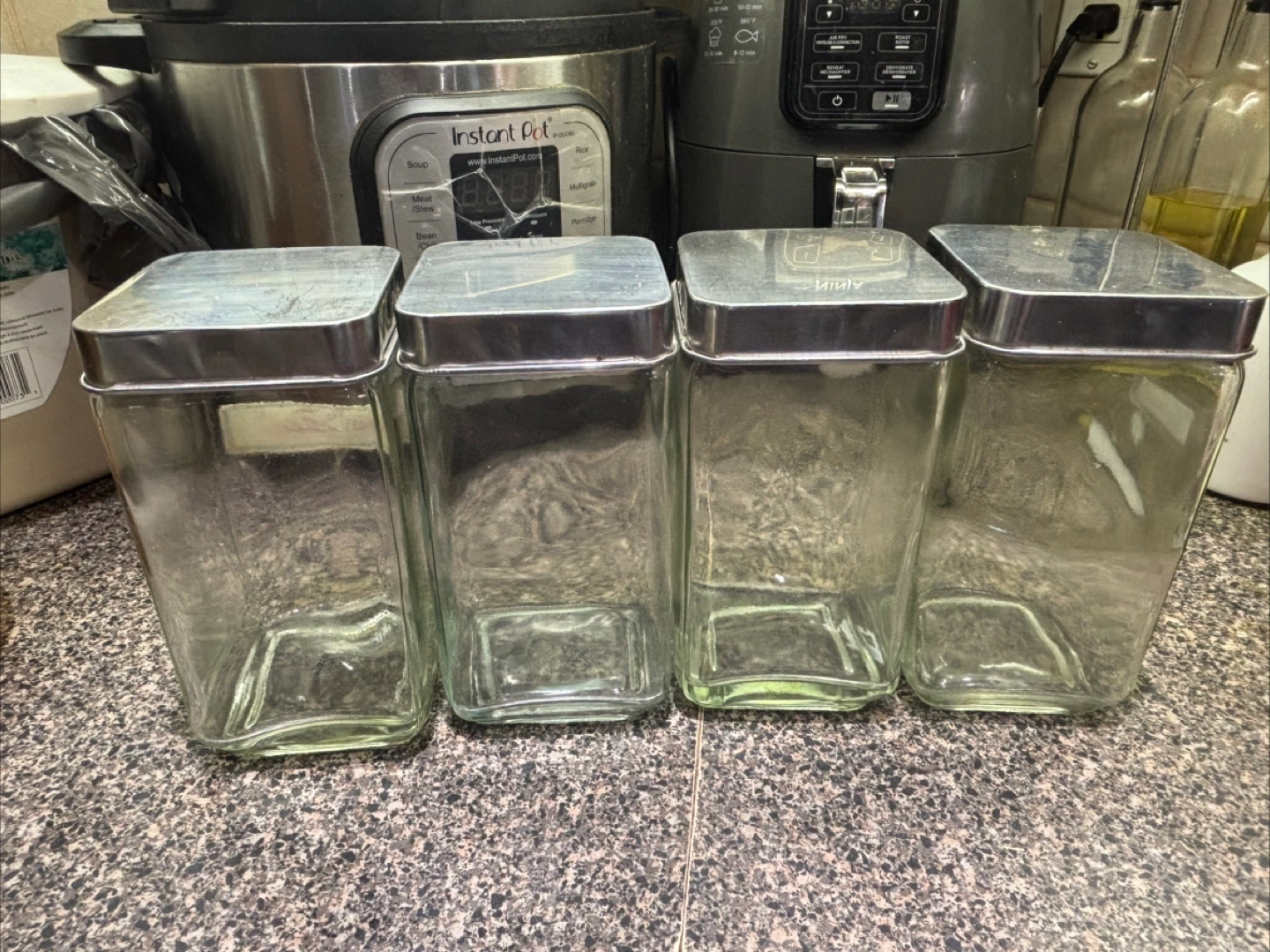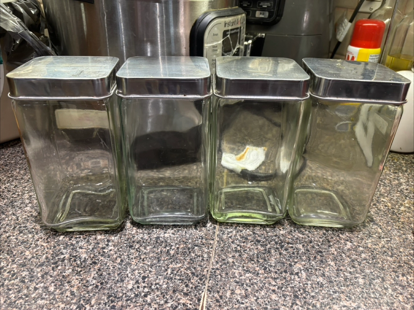 64Selling a set of four glass storage canisters with metal lids. They're perfect for organizing your pantry or kitchen counter. All for for $15