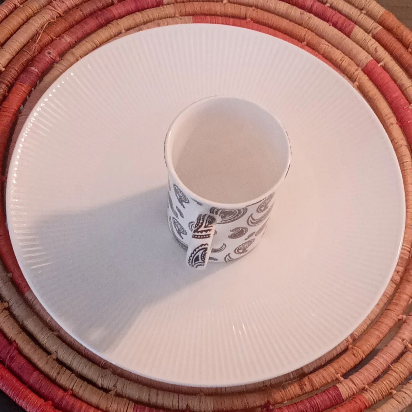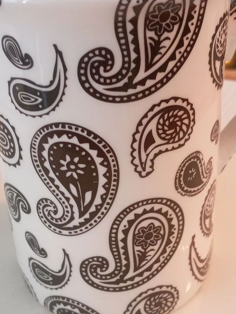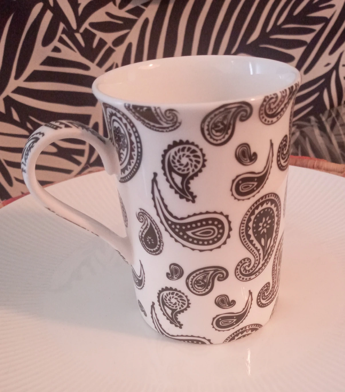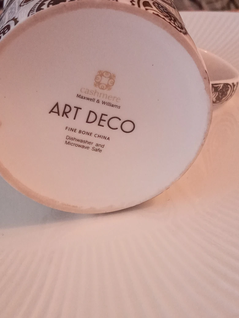 We are selling a Cashmere Maxwell & Williams Art Deco mug and a Gluckstein Home plate. The mug is in great condition and features a beautiful paisley design. The plate is also in great condition and features a textured design on the sides. Both are made of fine bone china and are dishwasher and microwave safe.