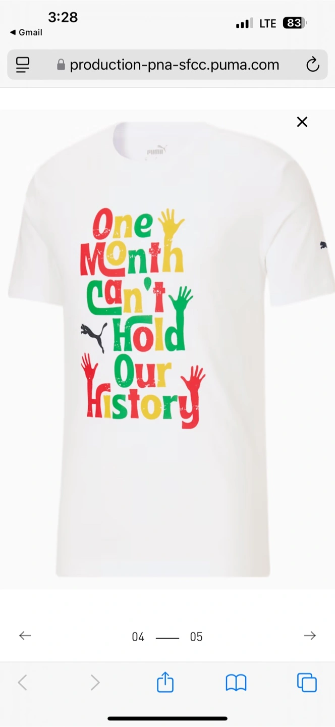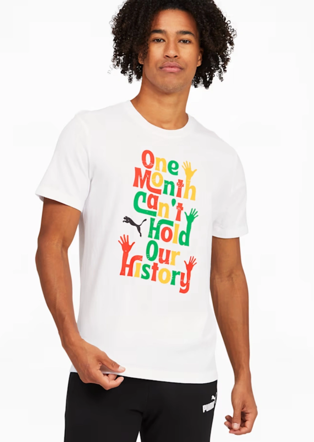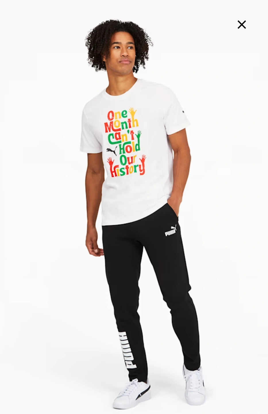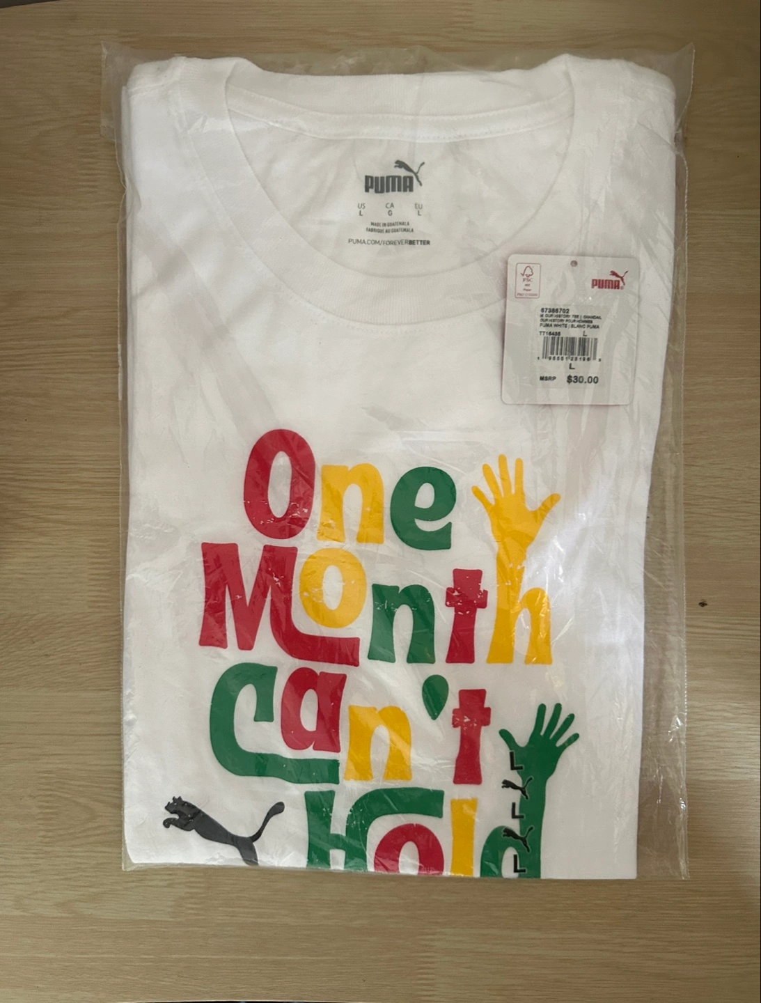 57Brand new Puma BHM (Black History Month) graphic tee in size L. The shirt is white with a colorful design. Originally bought for $30.