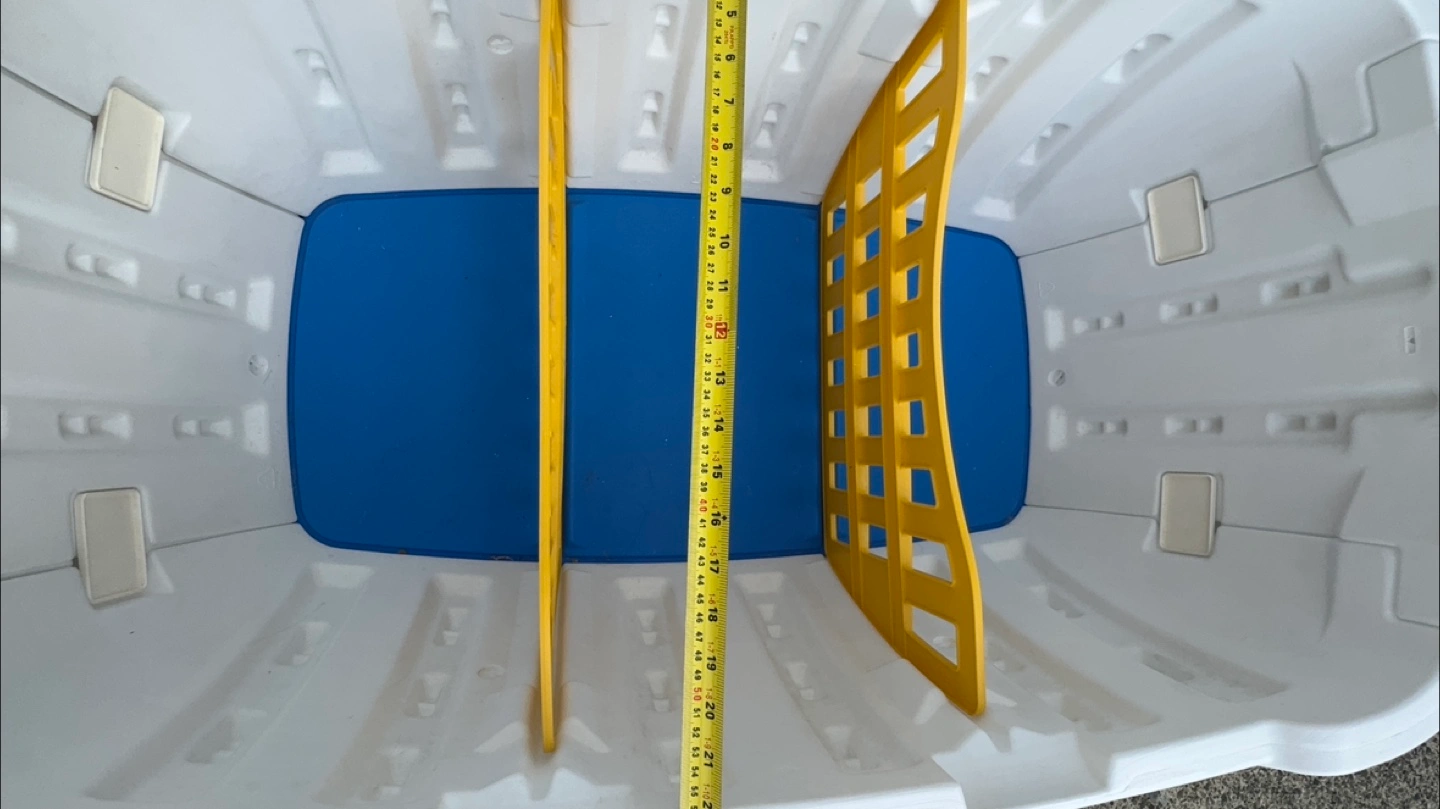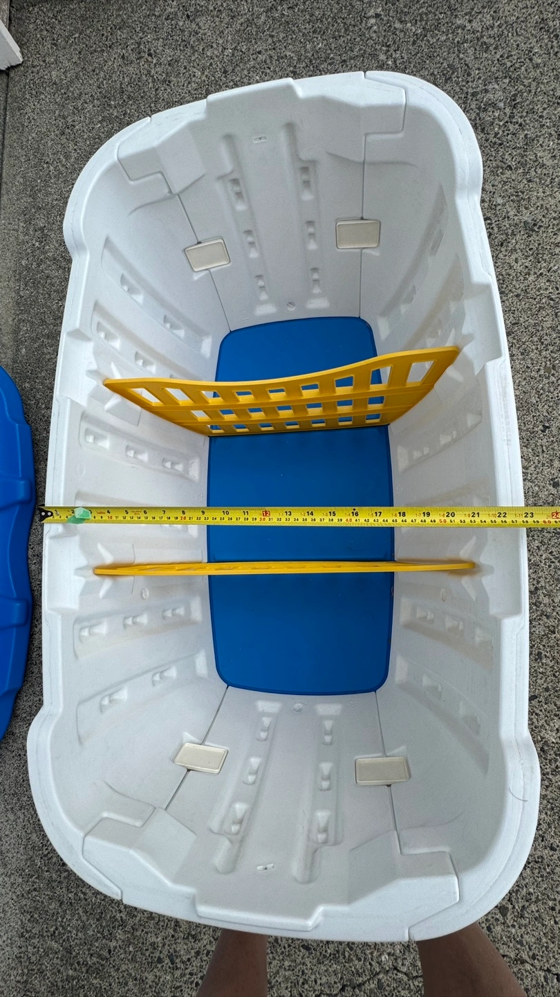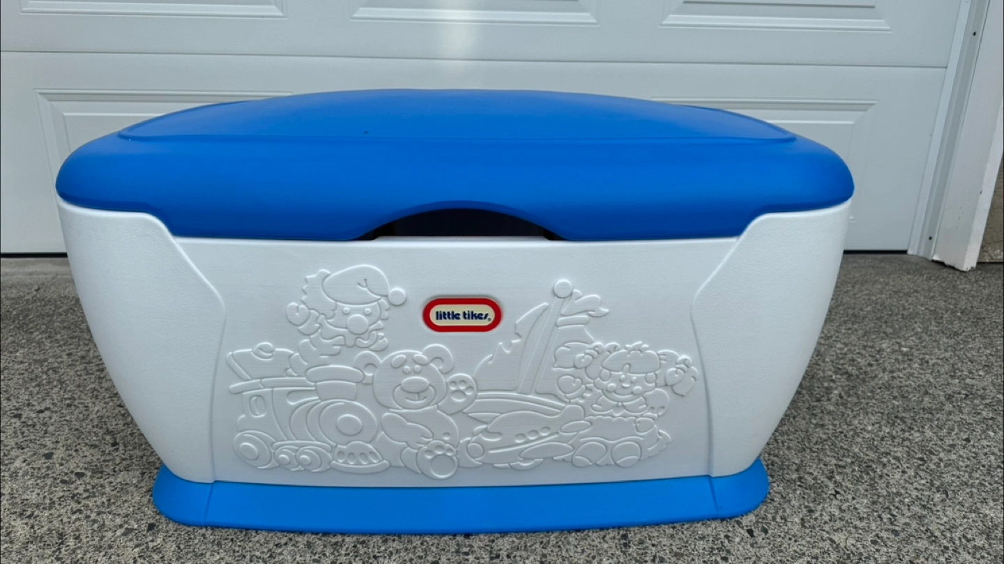 Selling a Little Tikes toy chest in good condition. It's a great way to store toys and keep things organized! The chest is blue and white and features cute embossed designs on the front. Inside are two yellow dividers that can be removed and a blue base. You can hold a lot of toys and books in these. Approximately 40” length x 20” high x 23” deep. Interior is 16” high. Buyer responsible for pickup. Toys not included.
