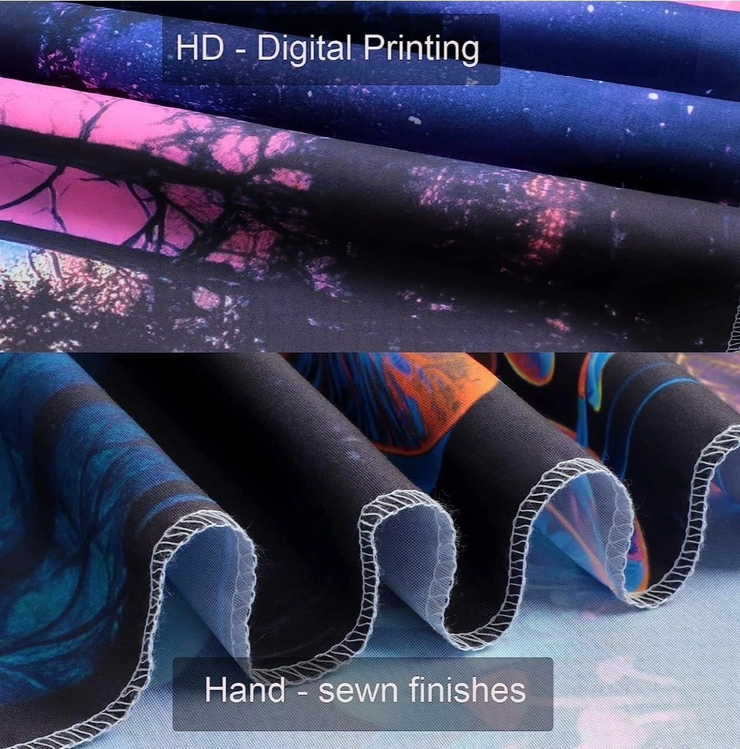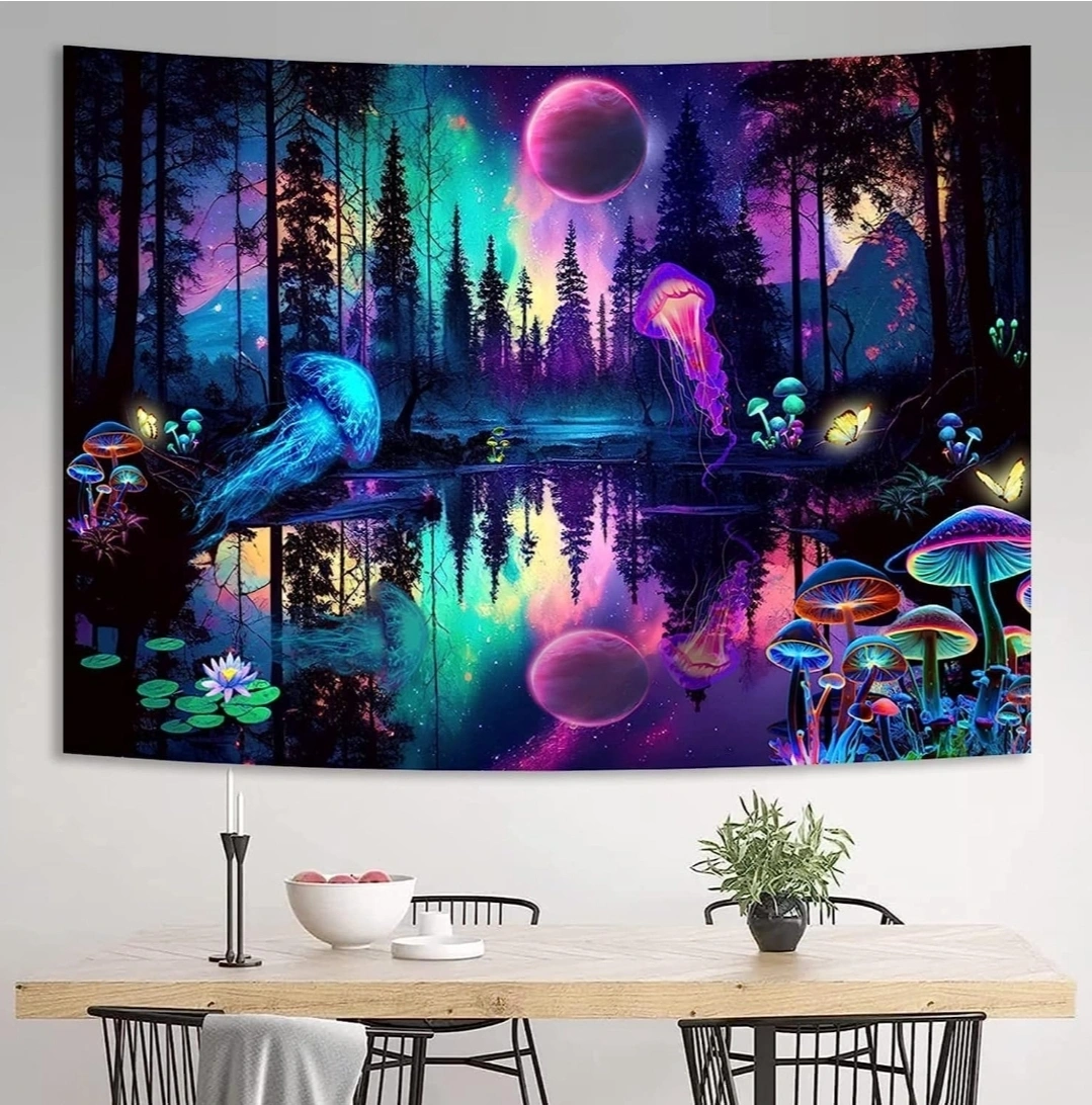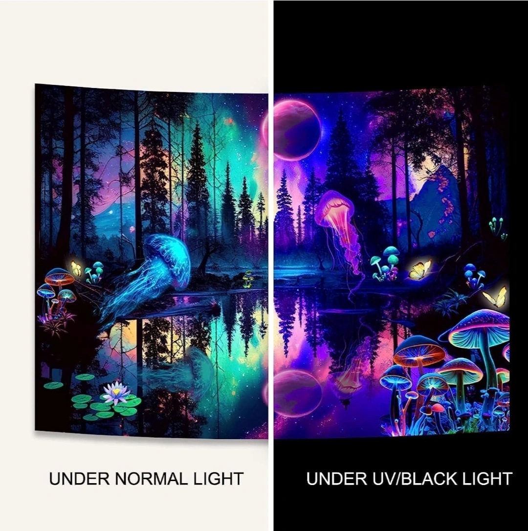 Perfect for bedrooms, meditation spaces, dorms, or art studios. The fantasy forest design comes alive under UV or blacklight, making it a striking visual centerpiece.