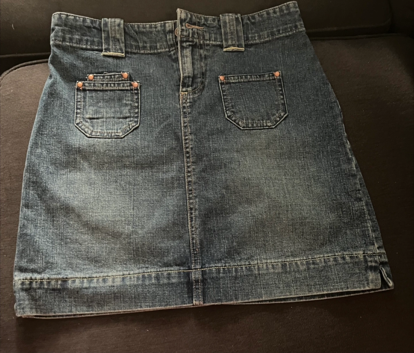 Selling an Old Navy denim mini skirt in size 1. It's in great condition and made of 100% cotton. Perfect for a casual look!