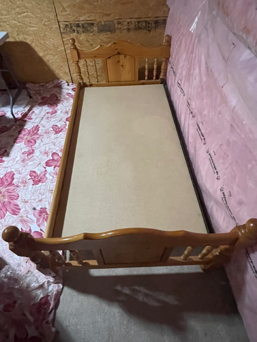 Selling a set of two solid wood twin Bunkbeds for kids . It's in excellent condition and ready for a new home. The frame features a classic design with a headboard and footboard. It can be use side by side or stacked on each other (also comes with a ladder and guard rails