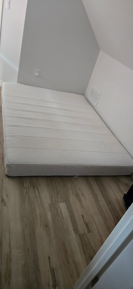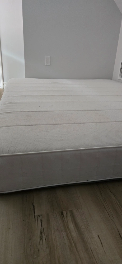 60Selling a used mattress. It has some signs of wear, as shown in the pictures. It's still comfortable and ready for a new home! It was only used for a few days (10 at most). There are a few cat hairs on it. Bought for $550 at Ikea. Queen size.