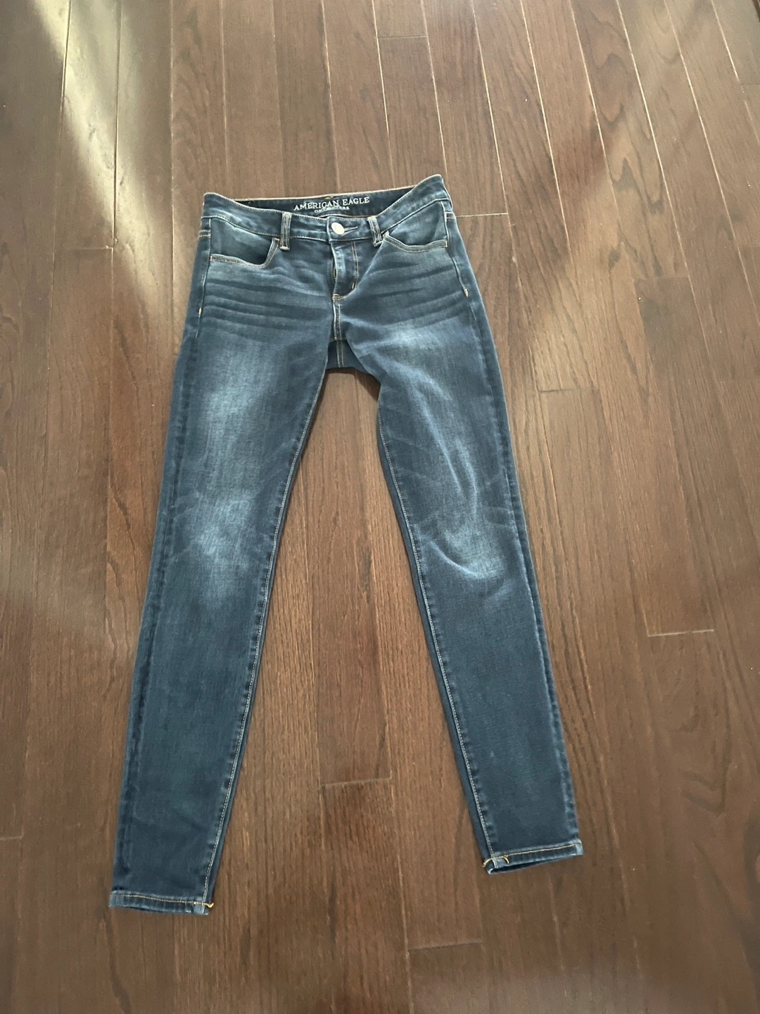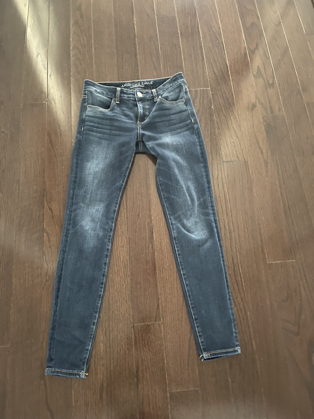Selling a pair of American Eagle jeans in a dark wash. They're in great condition and ready for a new home!