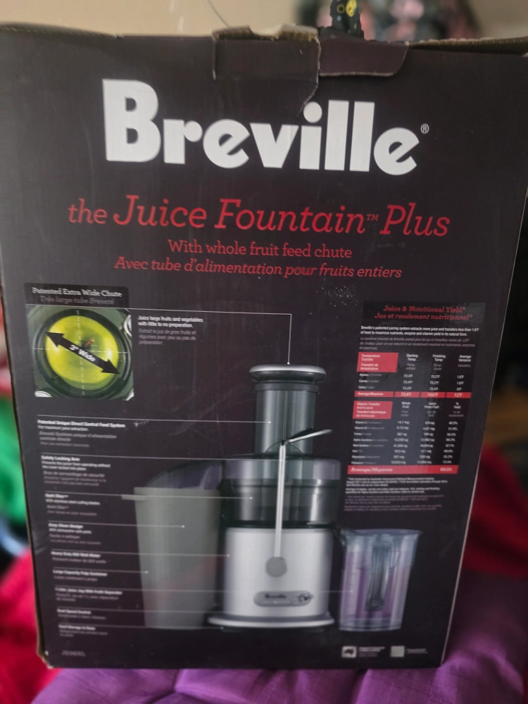 Selling a Breville Juice Fountain Plus. It features a whole fruit feed chute, so you can juice large fruits and vegetables with little to no preparation. It also has a patented direct central feed system and a safety locking arm ,was used only one time.