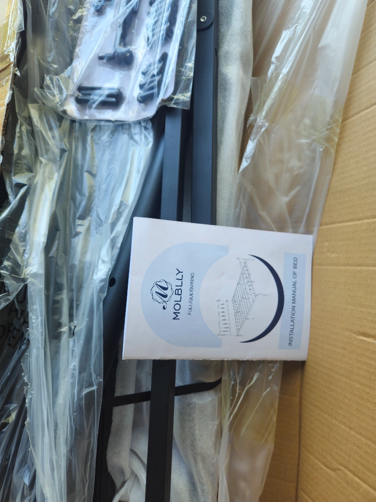 Selling a Molblly bed frame, sized for a full The frame is metal and comes with the installation manual.