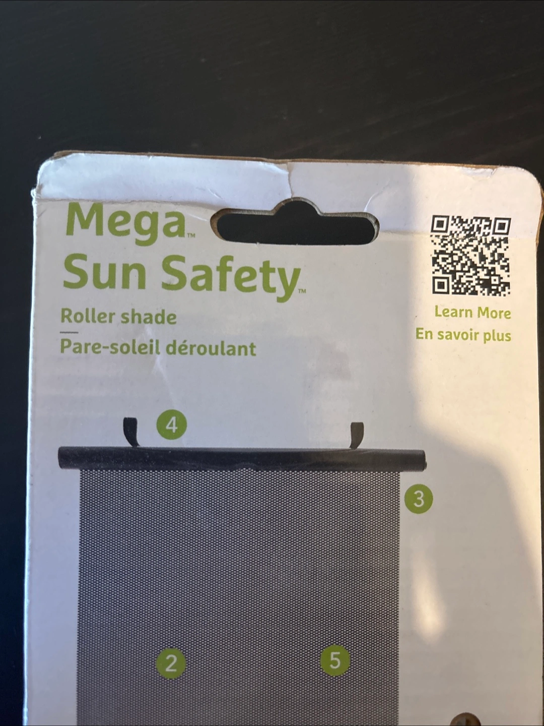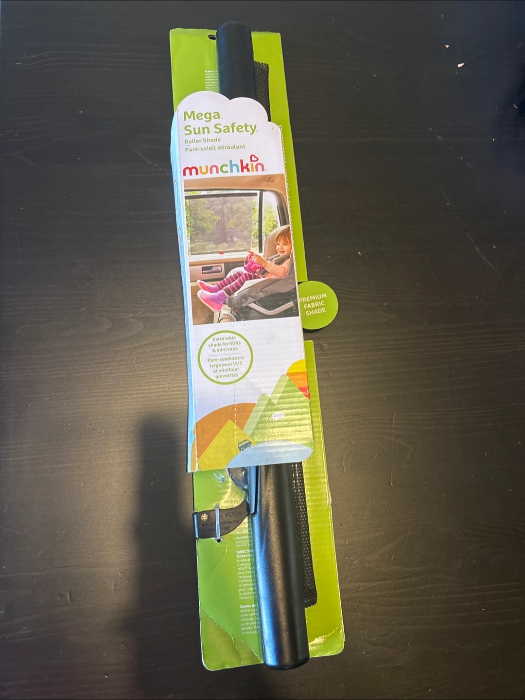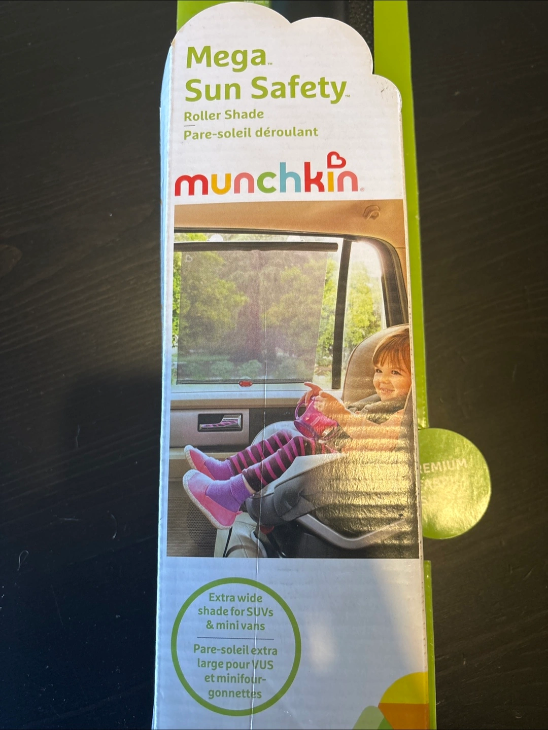 I'm selling a brand new Munchkin Mega Sun Safety Roller Shade! It's designed to help block UVA/UVB rays and features a White Hot indicator that turns white when the car is too hot. It's an extra-wide shade suitable for SUVs and mini-vans.