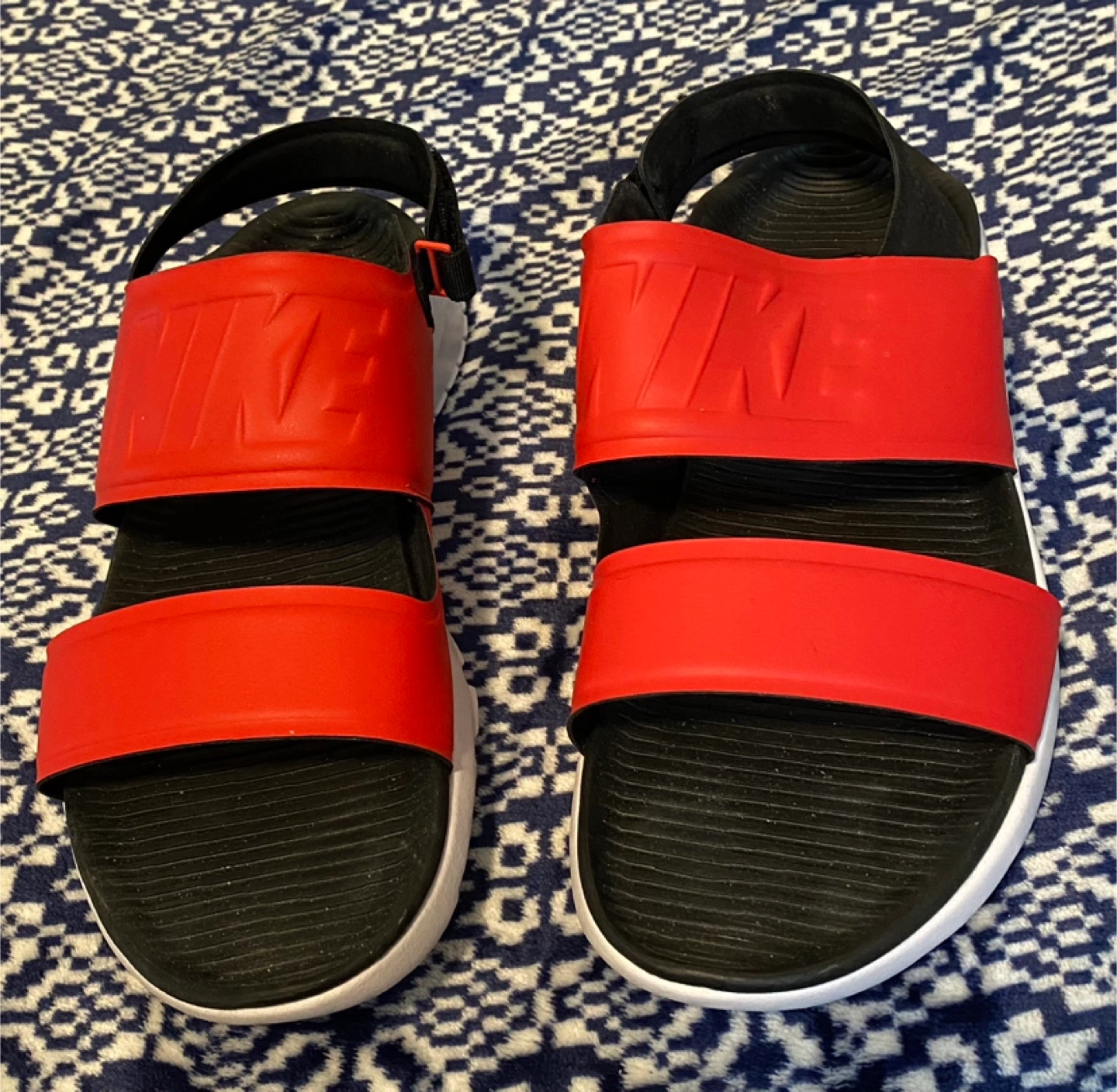10Selling a pair of Nike sandals in red and black. They look great and are super comfy for everyday wear!