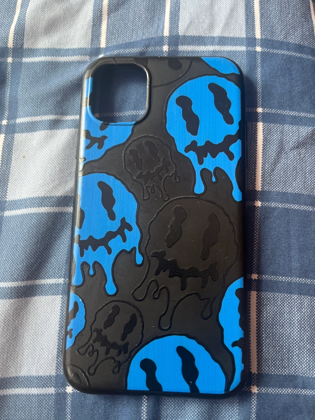 Cool iPhone case with a blue and black dripping smiley face design! It's in great condition and ready for a new phone