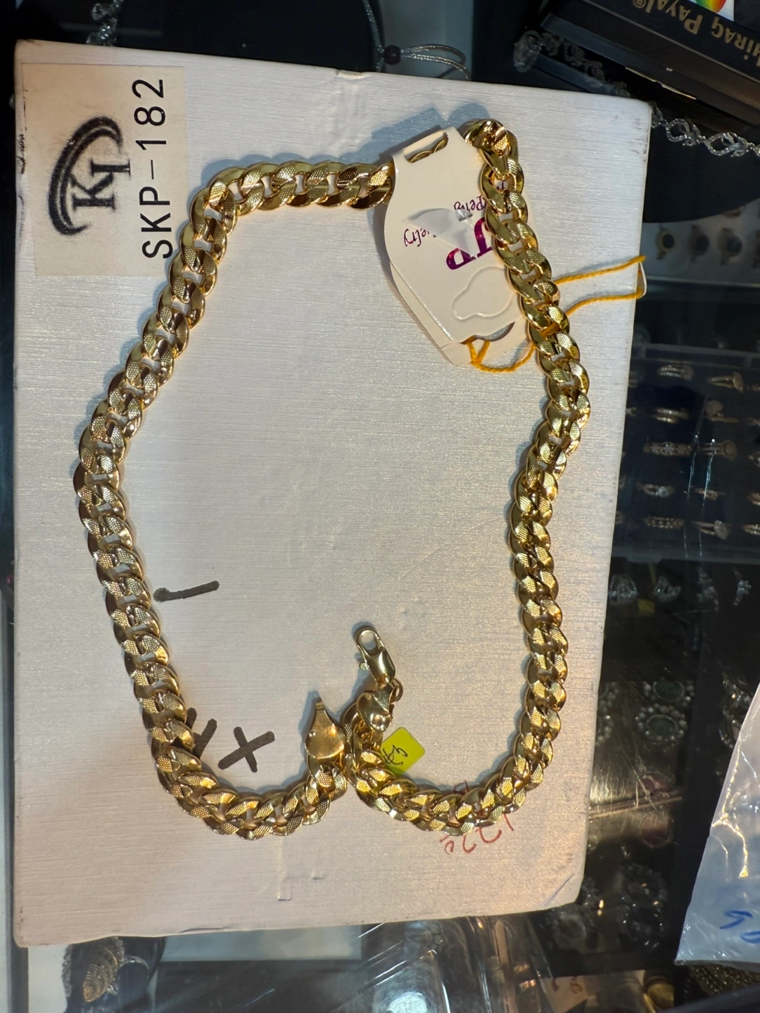 Selling a gold chain necklace. It's in good condition and would be a great addition to your jewelry collection!
