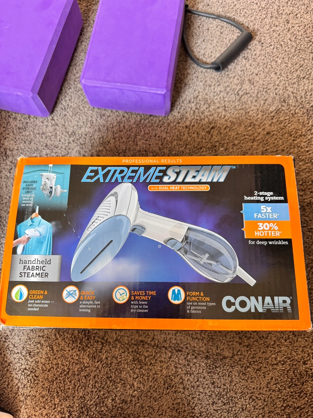 Get professional results at home with this Conair Extreme Steam handheld fabric steamer! It features dual heat technology and removes deep wrinkles faster. - 2-stage heating system - 5x faster - 30% hotter for deep wrinkles - Includes three removable attachments: fabric brush, creaser, and soft cushion brush