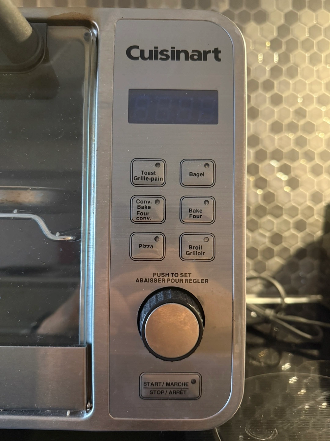 Selling a Cuisinart toaster oven. It has settings for toast, bagel, convection bake, bake, pizza, and broil. Great for small kitchens or quick meals!