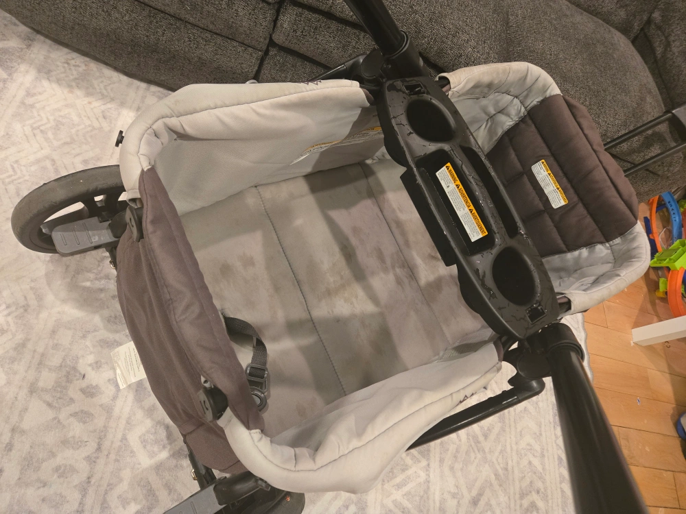 Parent Cup holder is currently in the wash I will include a picture when its out. There is a bit of sunscreen staining in the net pocket.
