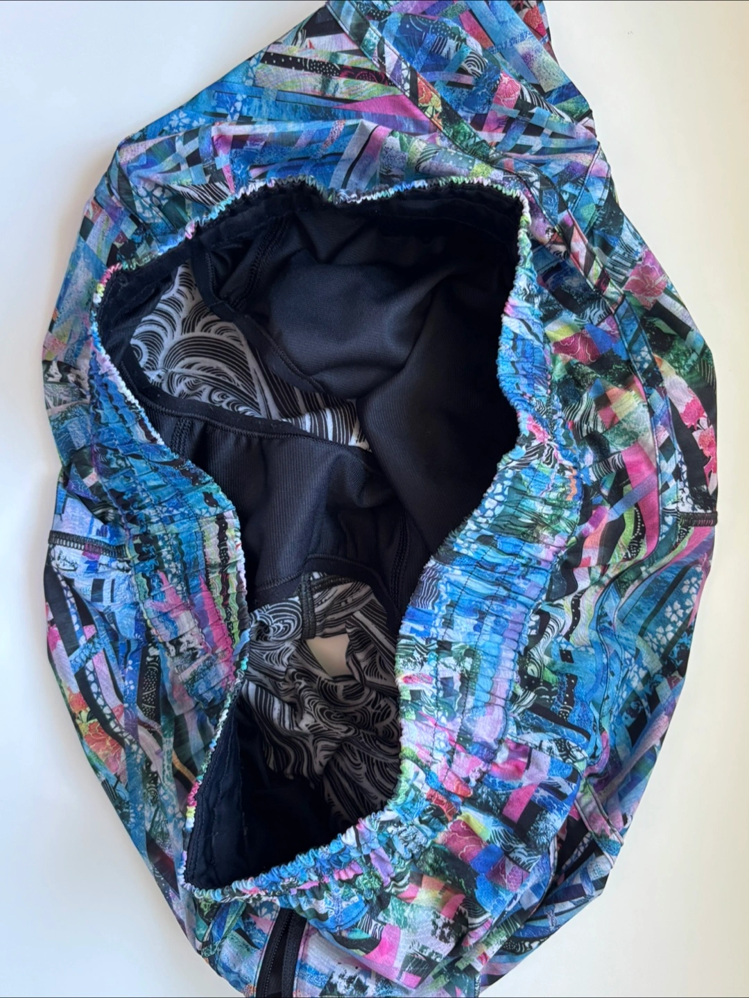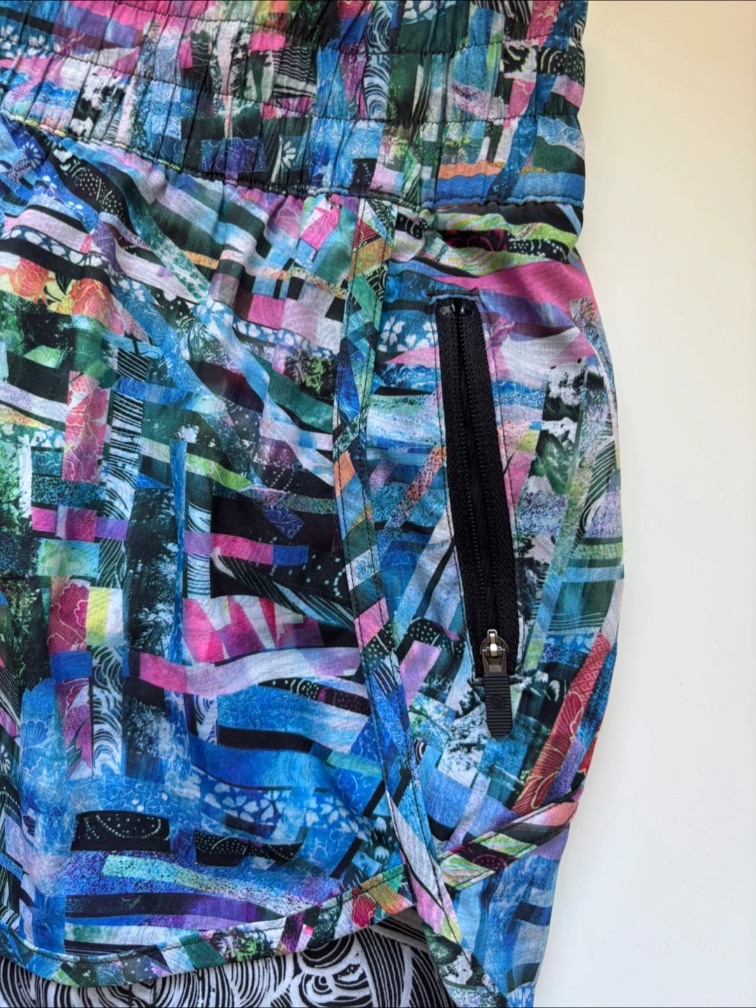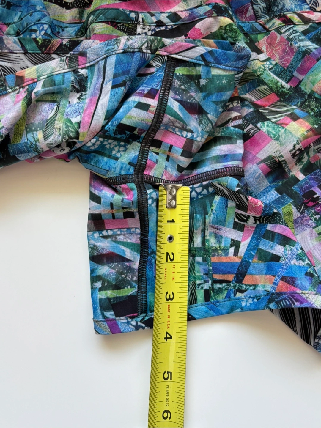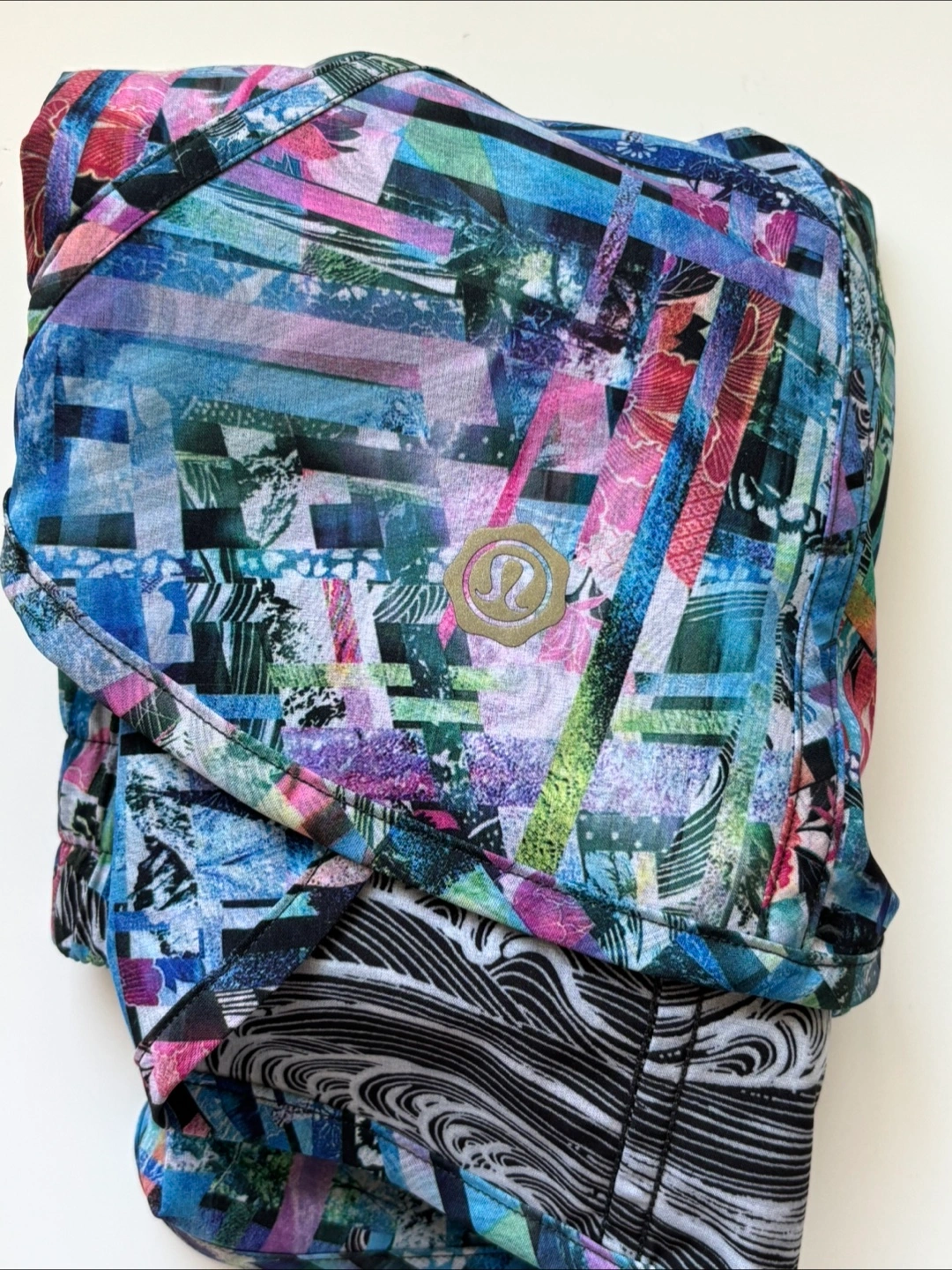 Selling a pair of Lululemon running shorts in size 10! They have a fun, colourful pattern and a convenient zippered pocket. The inseam is approximately 3 inches. Perfect for your next run or workout
