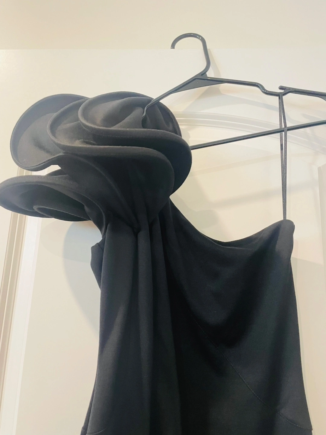 Selling a stylish black one-shoulder dress from ASOS! It's a size US 4 (UK 8, EU 36). The dress features a unique floral design on the shoulder, adding a touch of elegance to your look. Perfect for a night out or a special occasion!