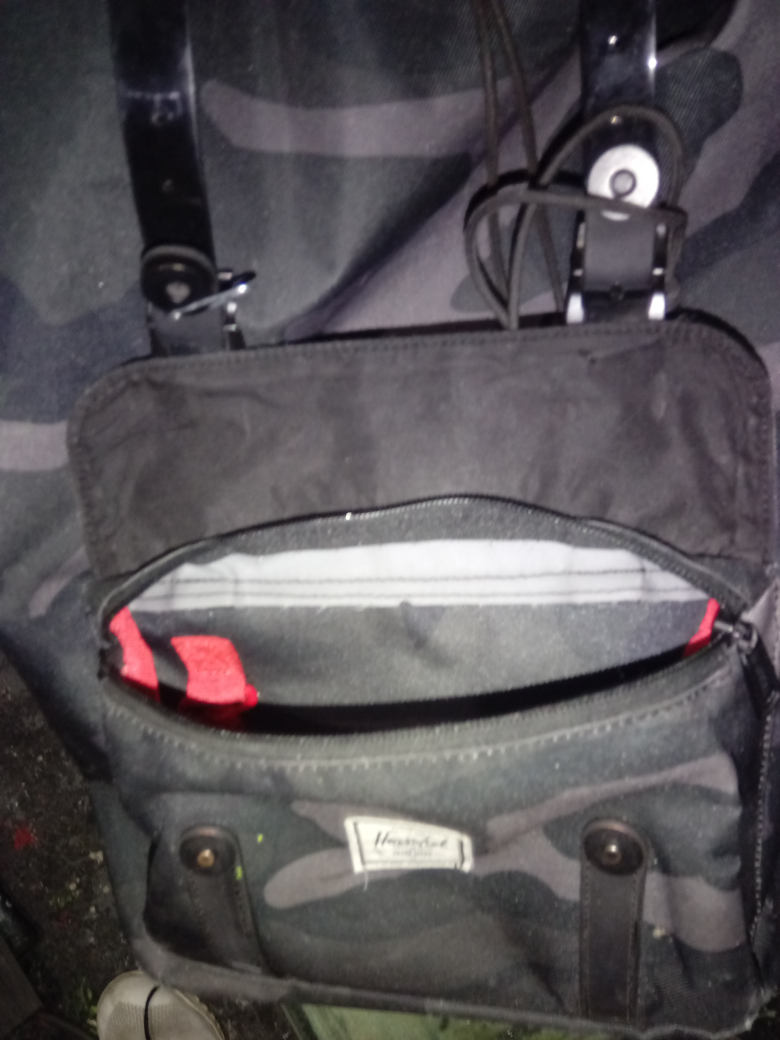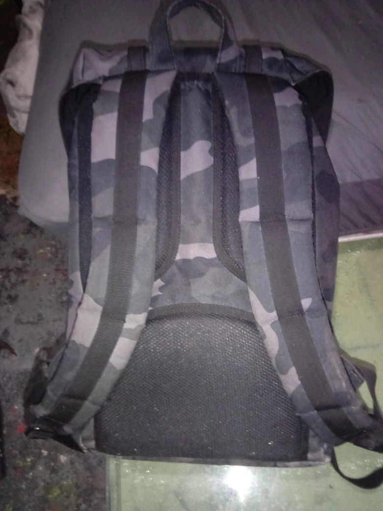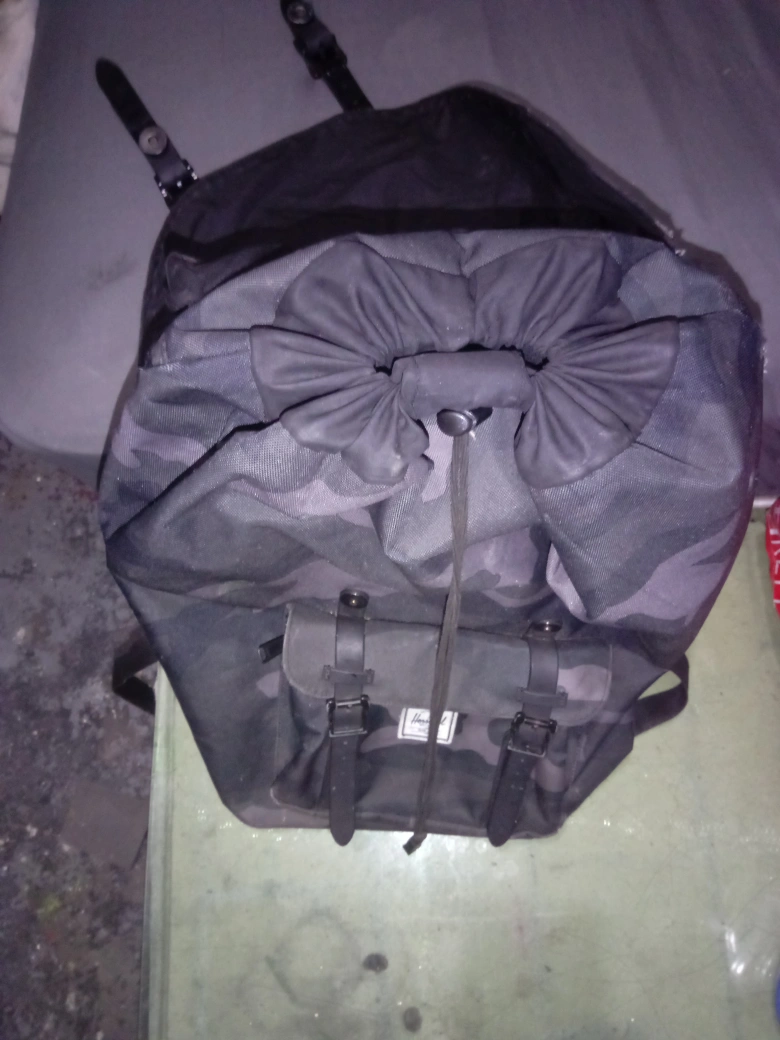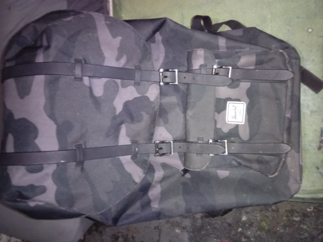 Selling a Herschel backpack in a cool camo pattern! It's got a drawstring closure and buckle straps. The interior lining is a fun red and white stripe. Perfect for school, work, or travel