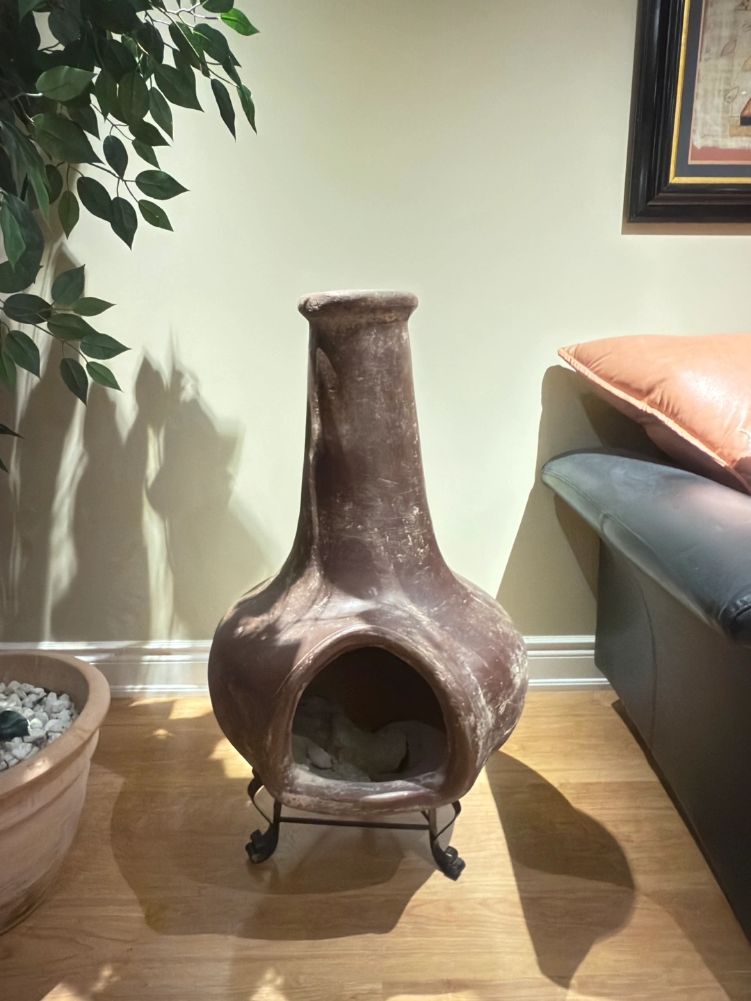 Selling a terracotta chiminea fireplace. It's in good condition never been use for wood fireplace and ready to add some warmth to your outdoor or indoor space.