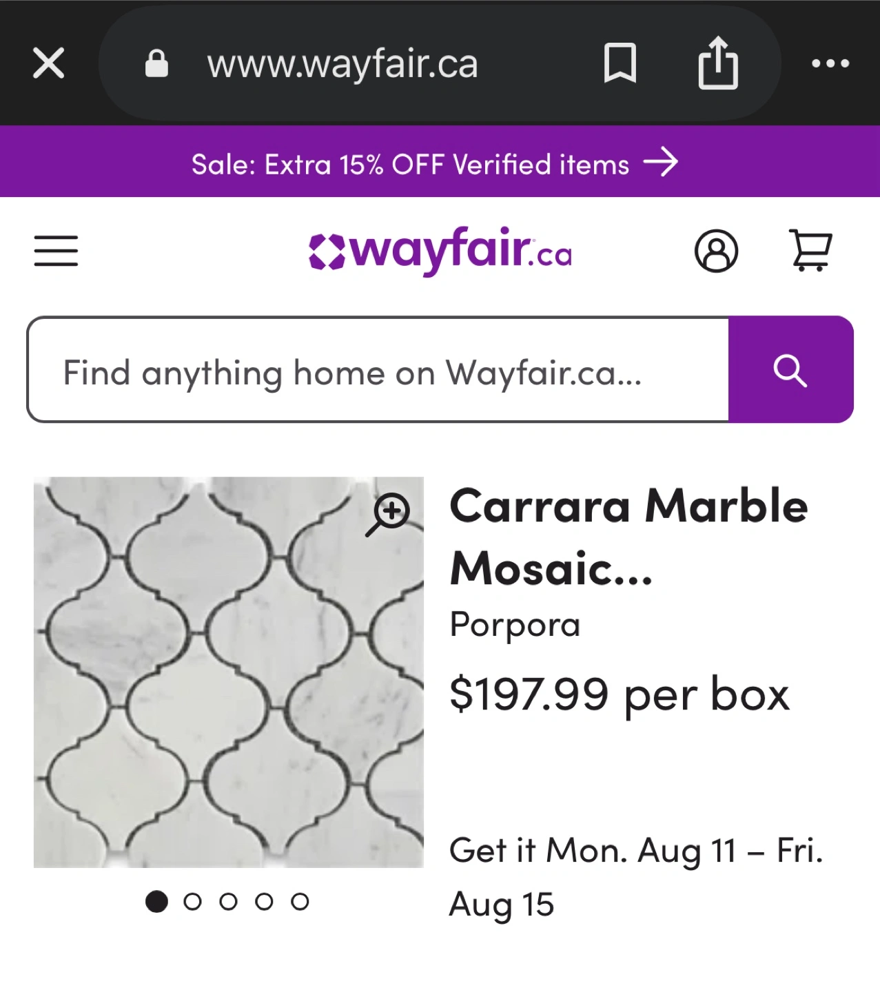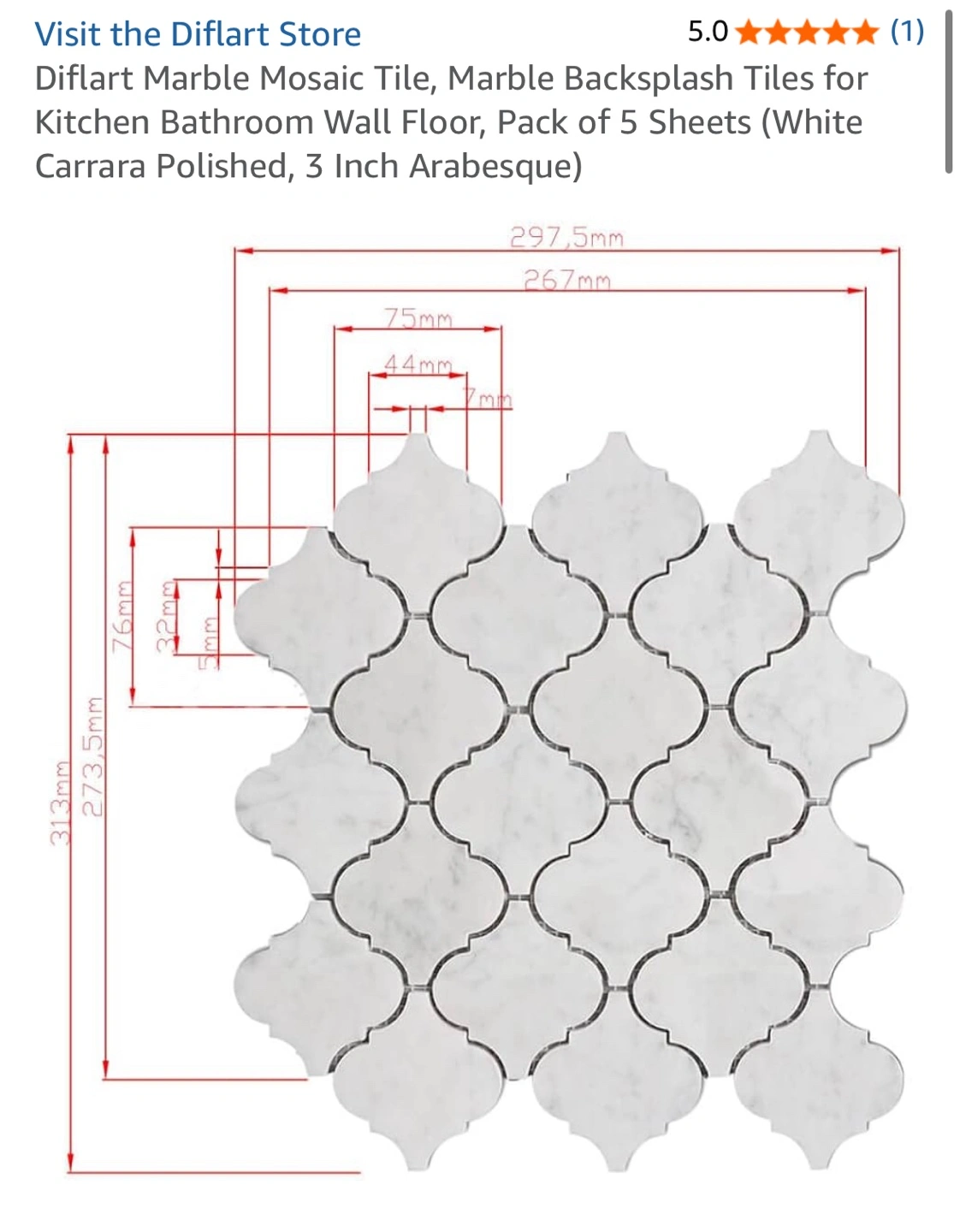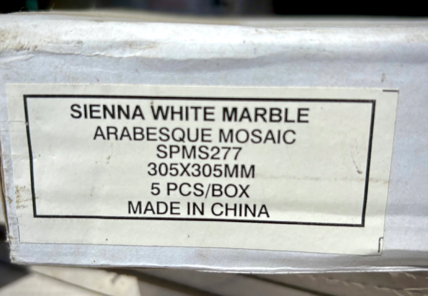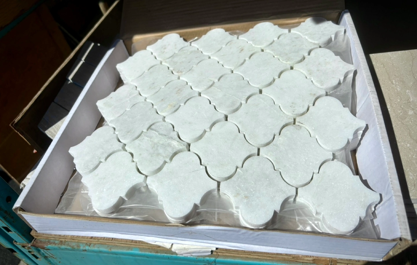 Selling a box of Sienna White Marble Arabesque Mosaic tiles.