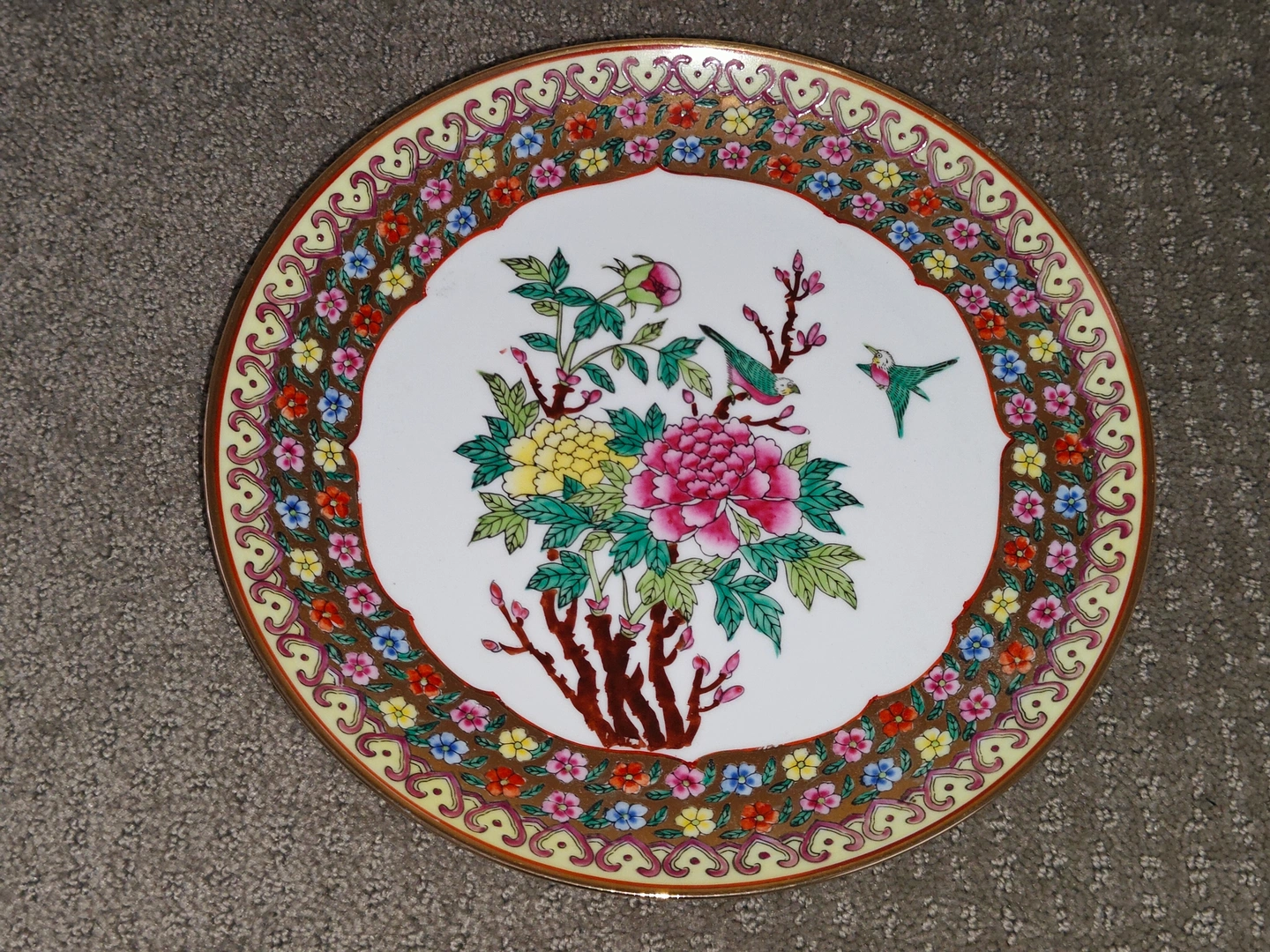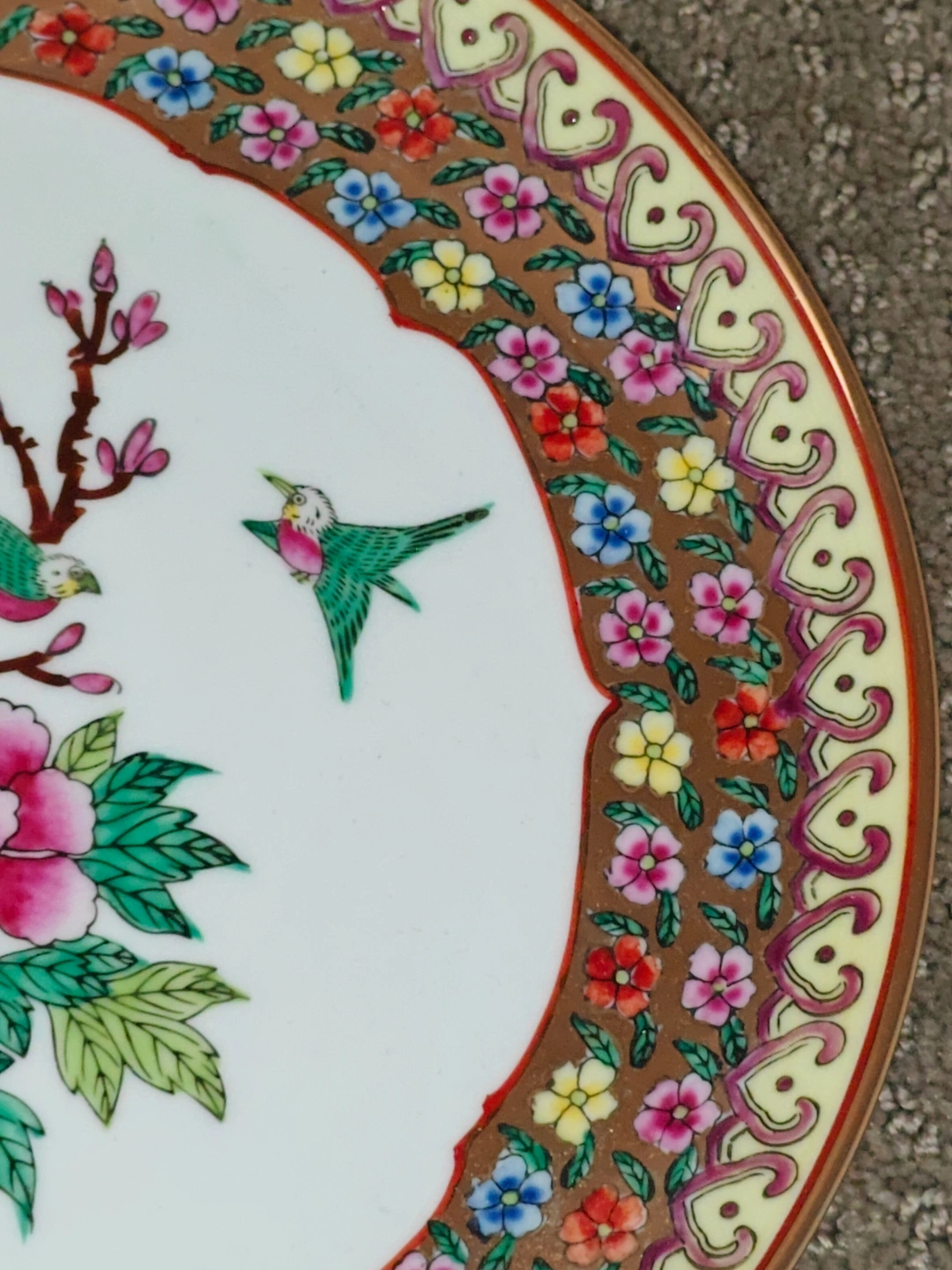 I am selling a Chinese Antique Asian 10" Famille Rose Flowers Birds Decorative Art Porcelain Plate in excellent condition. This is an exquisite and beautiful antique Chinese porcelain plate, perfect for any collector of fine Asian ceramics. The plate is in excellent vintage condition with no chips or cracks, showcasing its remarkable preservation over time.