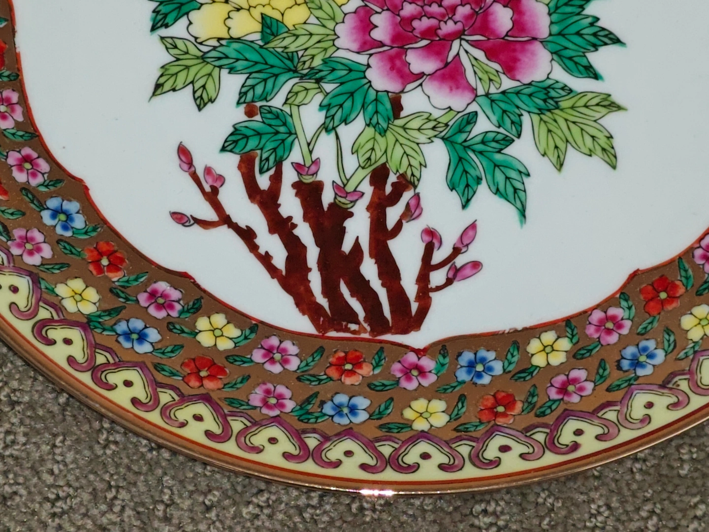 Chinese Vintage Asian 10" Famille Rose Flower Decorative Plate