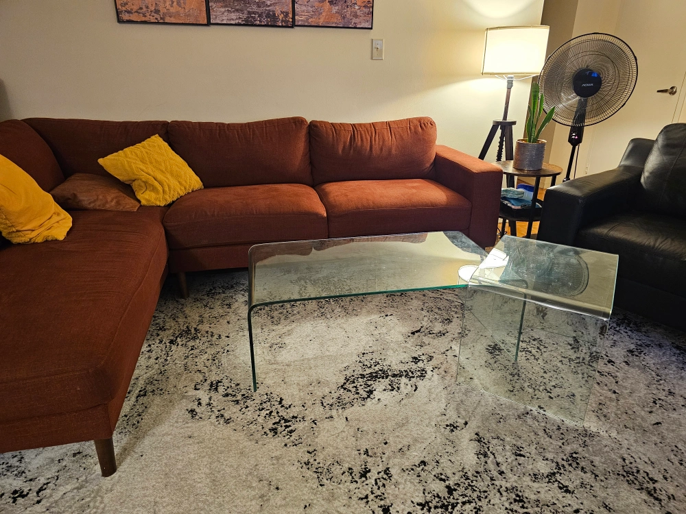 150Selling 2 Glass Tables. selling because it doesn't match the concept of our living room. Table is still in excellent condition. Long Glass Table still in great condition Length 42in Width 23in Height 14in Short Glass Table Length 17.5in Width 23in Height 17.5in