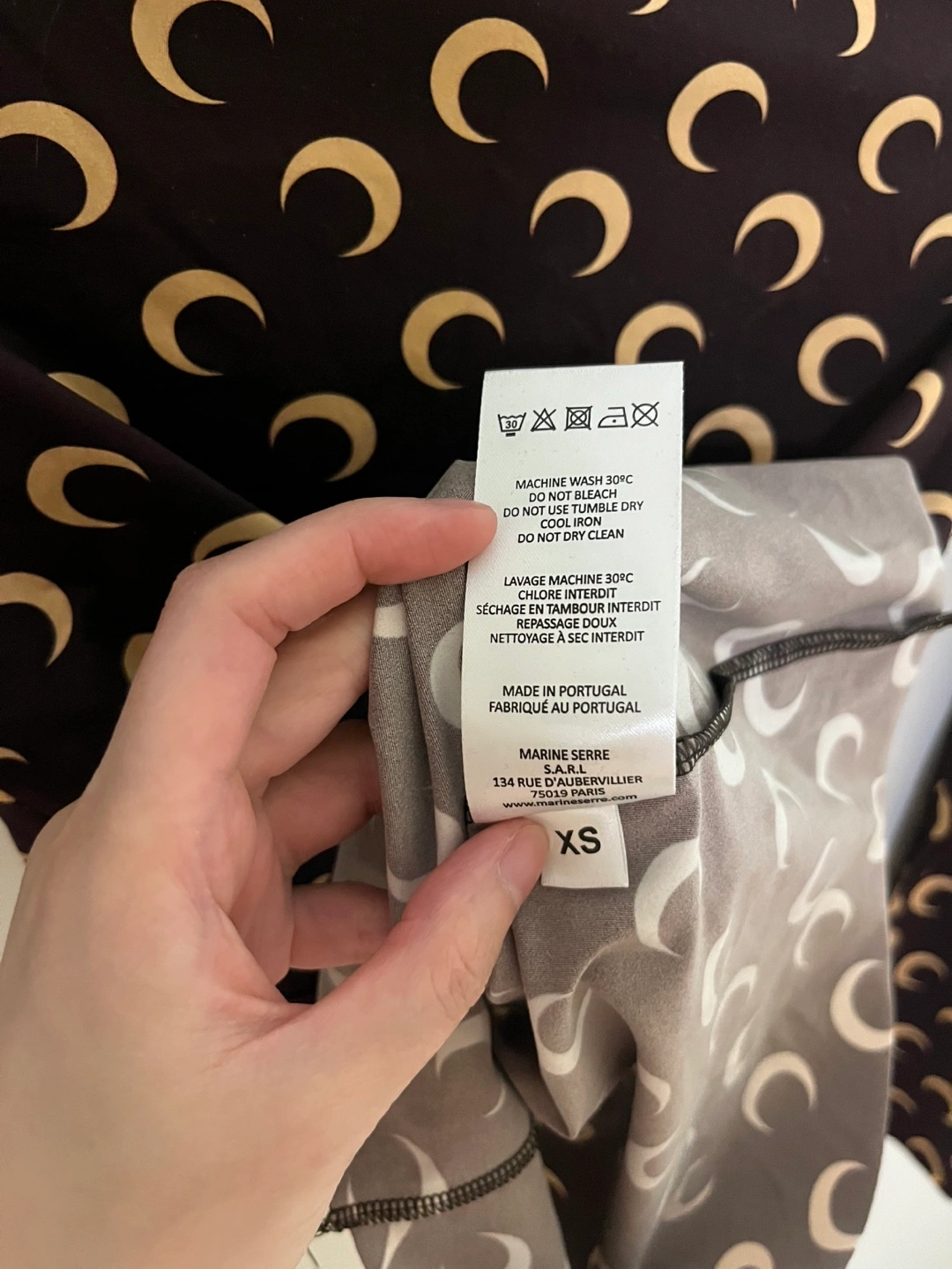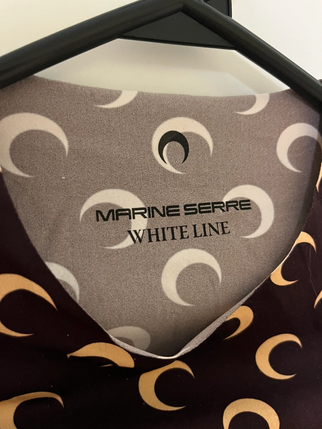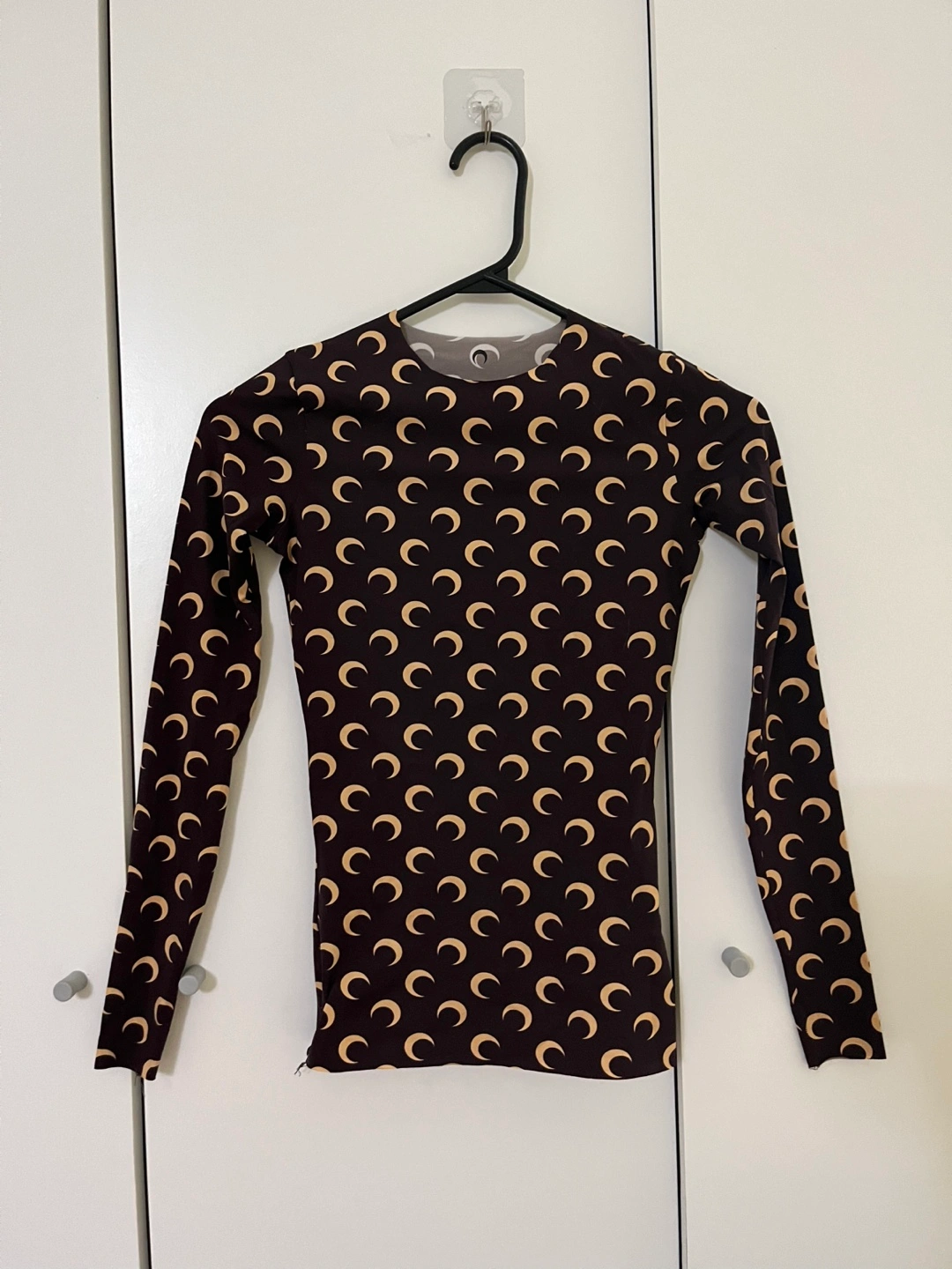 Selling a Marine Serre White Line long-sleeve top in size XS. It features the iconic moon print. The main fabric is 88% polyamide and 12% elastane. Perfect for adding a unique touch to your wardrobe!