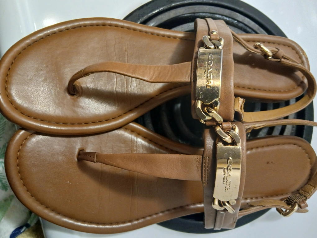 Selling a pair of Coach Caterine sandals in size 9B. They have a stylish design with gold-tone accents. Please see photos for condition! open to offers they are so beautiful n perfect my feet are to big for them....