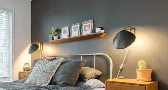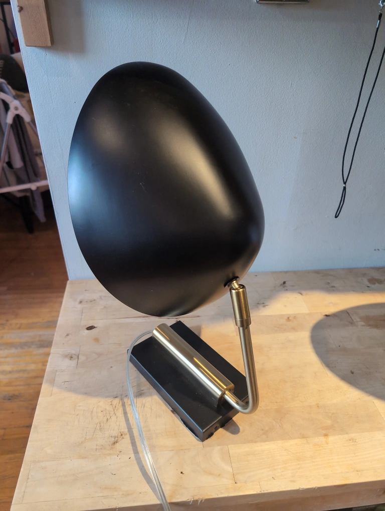 Selling a set of two stylish desk or wall lamps. They feature a sleek black shade with gold accents, adding a touch of modern elegance to any space. Includes wall mount bracket and all screws.