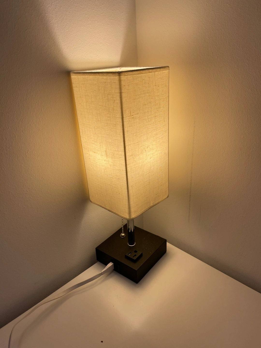 This modern table lamp is perfect for a bedside table or desk! It features a sleek design with a fabric shade and a convenient USB port built into the base. Great for charging your phone or other devices while you read or relax