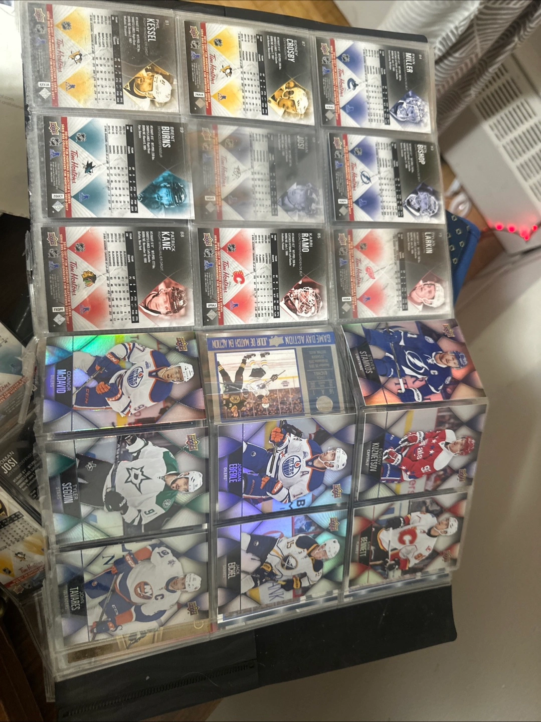 Selling a binder full of hockey trading cards! Includes cards from Upper Deck and Tim Hortons. Great for collectors or anyone looking to start a new hobby