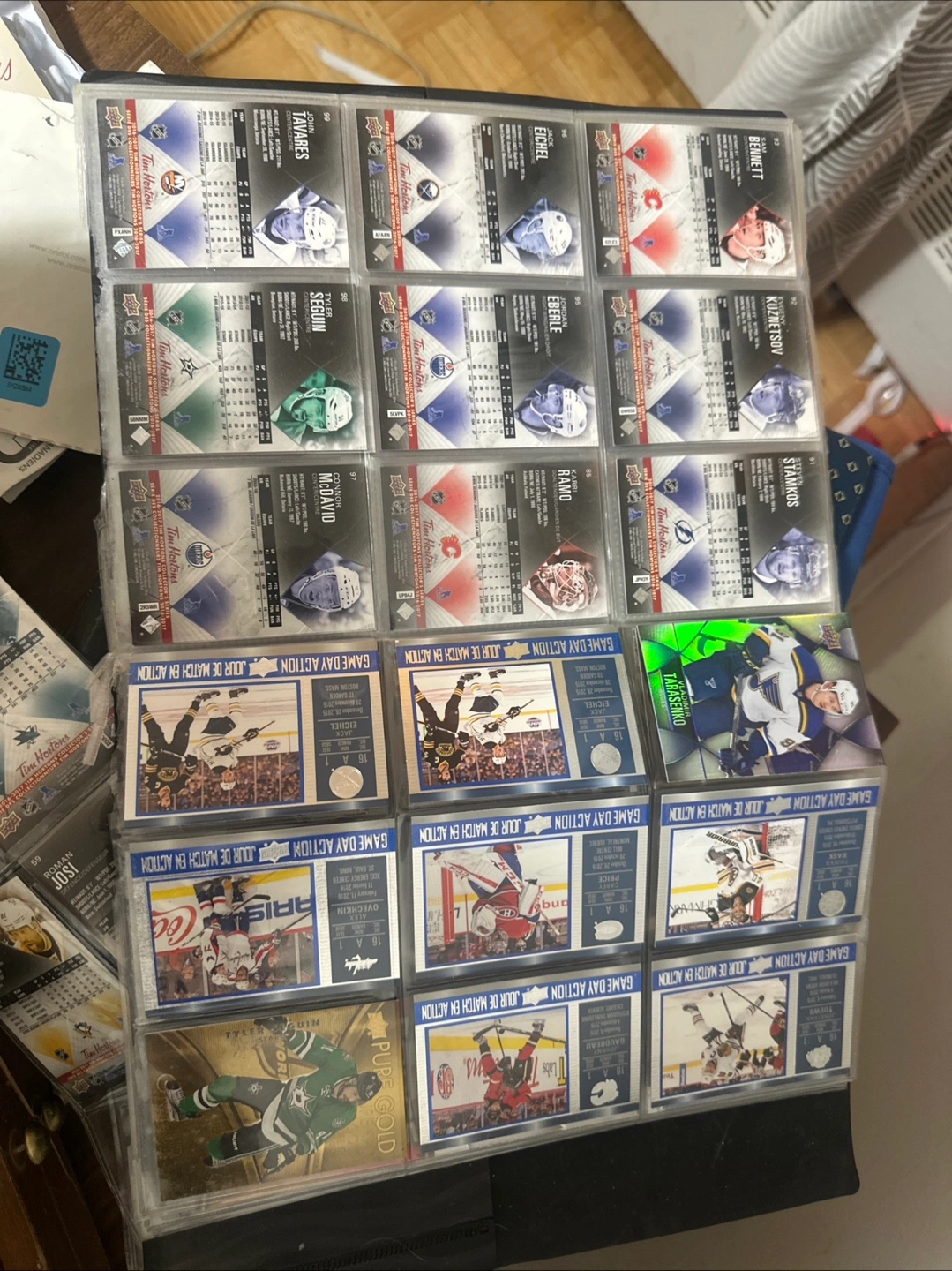 Selling a binder full of hockey trading cards! Includes cards from Upper Deck and Tim Hortons. Great for collectors or anyone looking to start a new hobby
