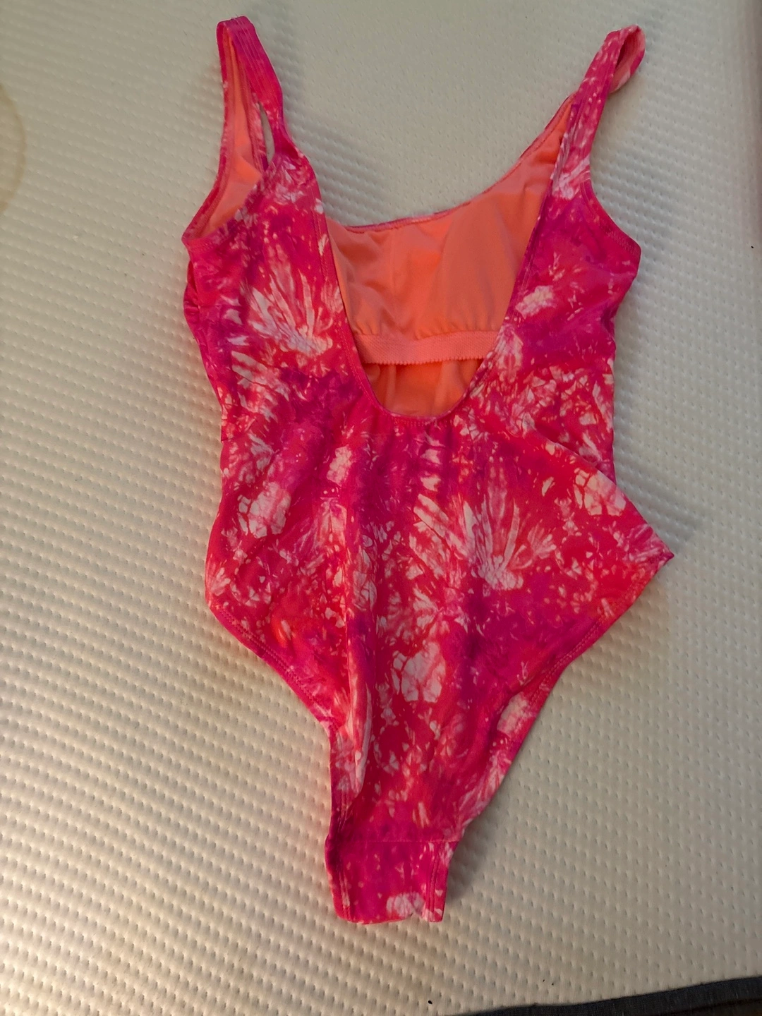 183Selling a cute pink and white tie-dye swimsuit! It's new and ready for summer swims!