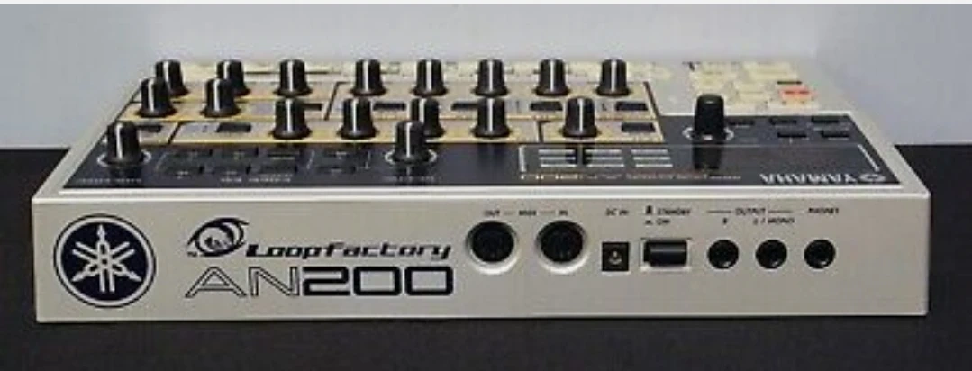 The AN200 is a compact tabletop physical modelling analog synthesizer and sequencer. The AN200 sounded like the AN1x keyboard. The sounds are pretty phat, from punchy analog bass to squelchy distorted 303-lines. It models two analog VCO oscillators with sawtooth, variable pulse, mix, multi-saw, OSC Sync, FM, resonant multimode filters and 5 voices of polyphony. To accompany this beastly little synth engine is a 32-voice AWM2 section with about 120 drum and rhythm sounds for creating complete dance grooves, patterns and songs