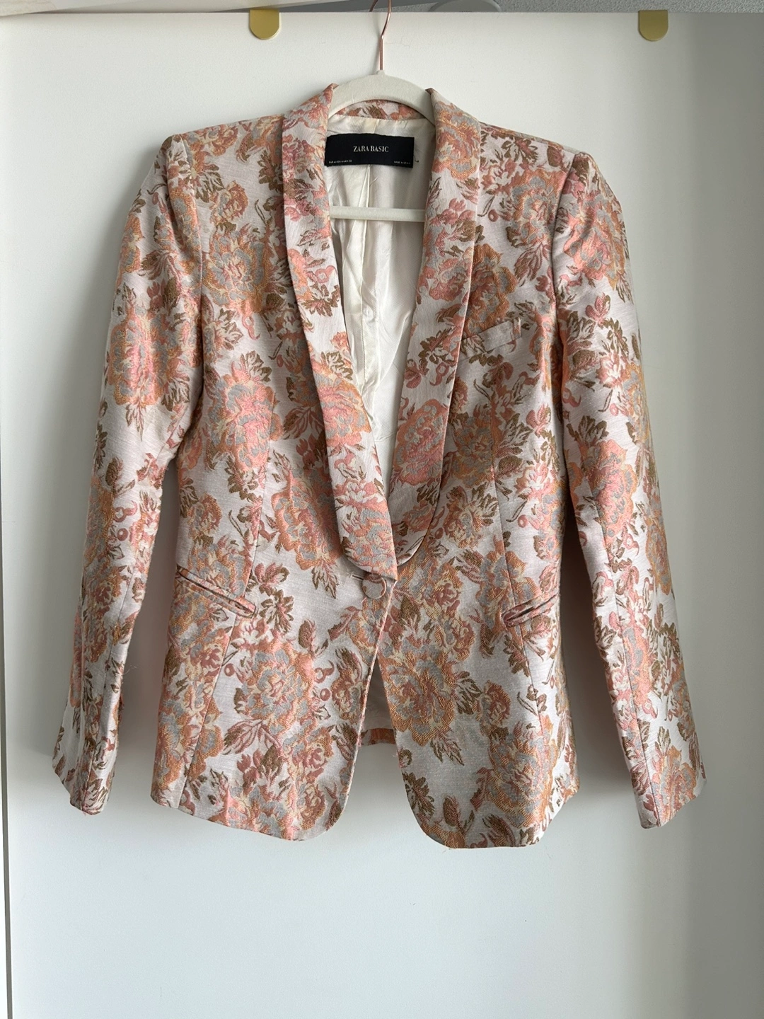 584Selling a Zara Basic blazer with a beautiful floral pattern. It's a size M and in good condition.