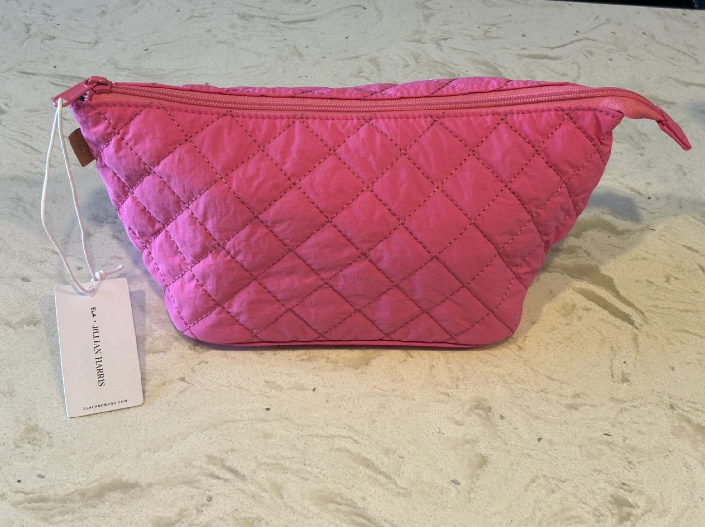 Selling a cute Ela x Jillian Harris bag! It's a lovely pink colour with a quilted design. The inside has a fun, colourful pattern. Perfect for adding a pop of colour to any outfit!