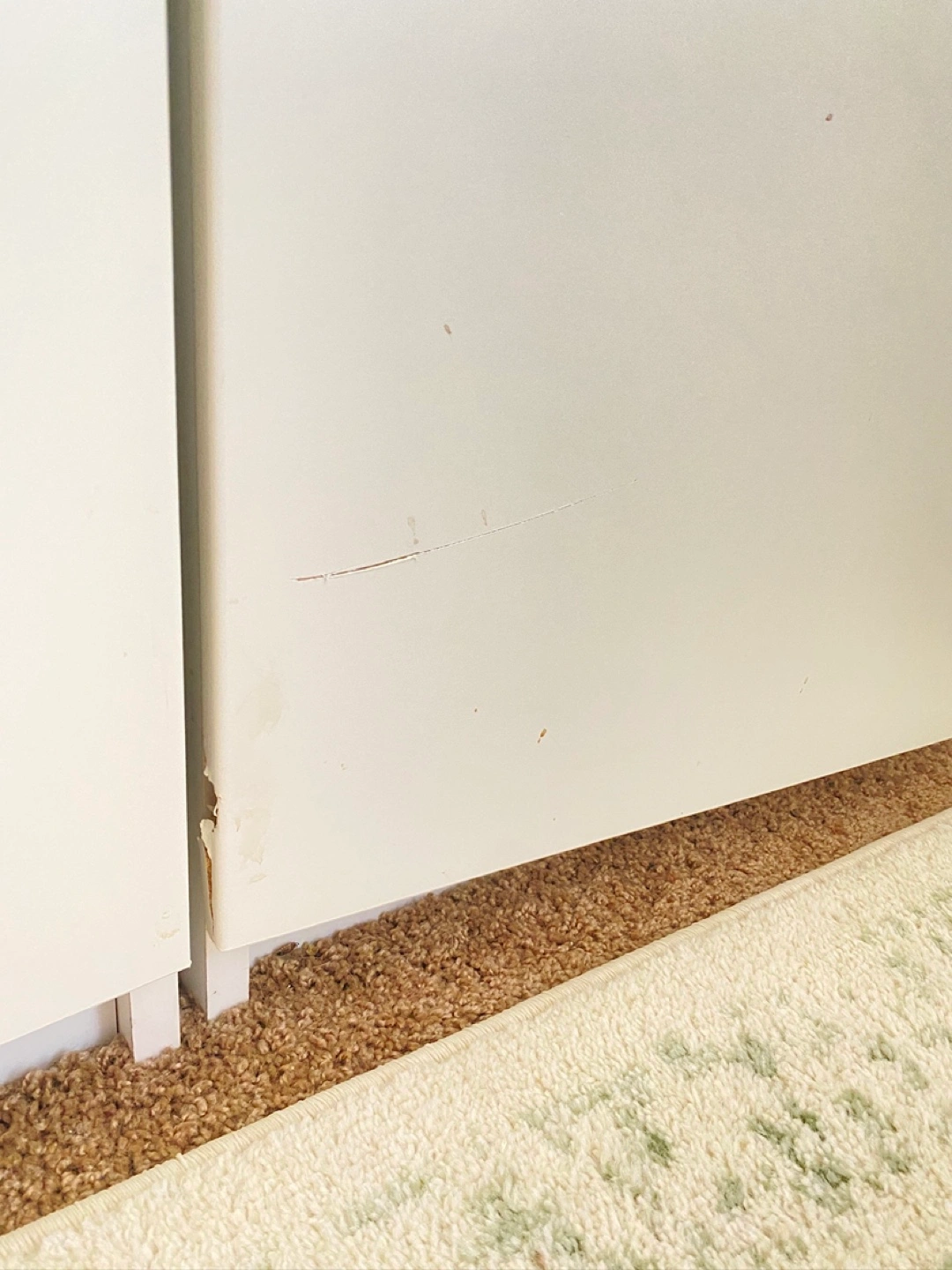 One is perfect condition. The other one (on the right) is perfect except for has some damage on the bottom door hinge of one of the doors see photos but it doesn’t affect the door since it’s on the bottom! The door Works fine I’ve never had an issue with it. You can buy a new door at ikea for $100. That’s the only thing that needs to be replaced if you wish you to but you don’t need to for functionality at all. Door works totally fine.