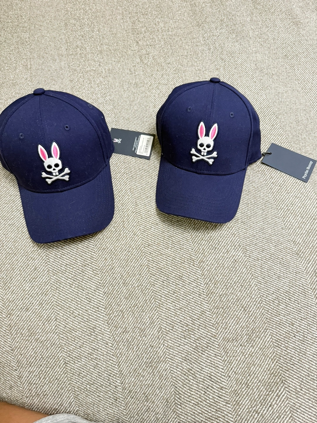 Check out this brand new Psycho Bunny baseball cap! It's a stylish navy colour and features the iconic bunny and crossbones logo. It's in perfect condition with the tags still attached, so it's ready to wear. A great addition to any wardrobe! Two available
