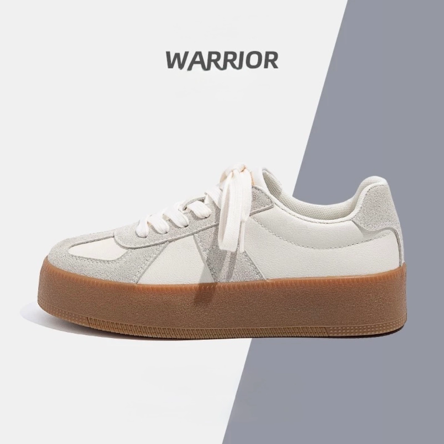 Selling a pair of Warrior platform sneakers in a women's size 6. Worn once. They're a stylish off-white colour with a cool, chunky sole. These sneakers are perfect for adding a bit of height and a trendy touch to any outfit!