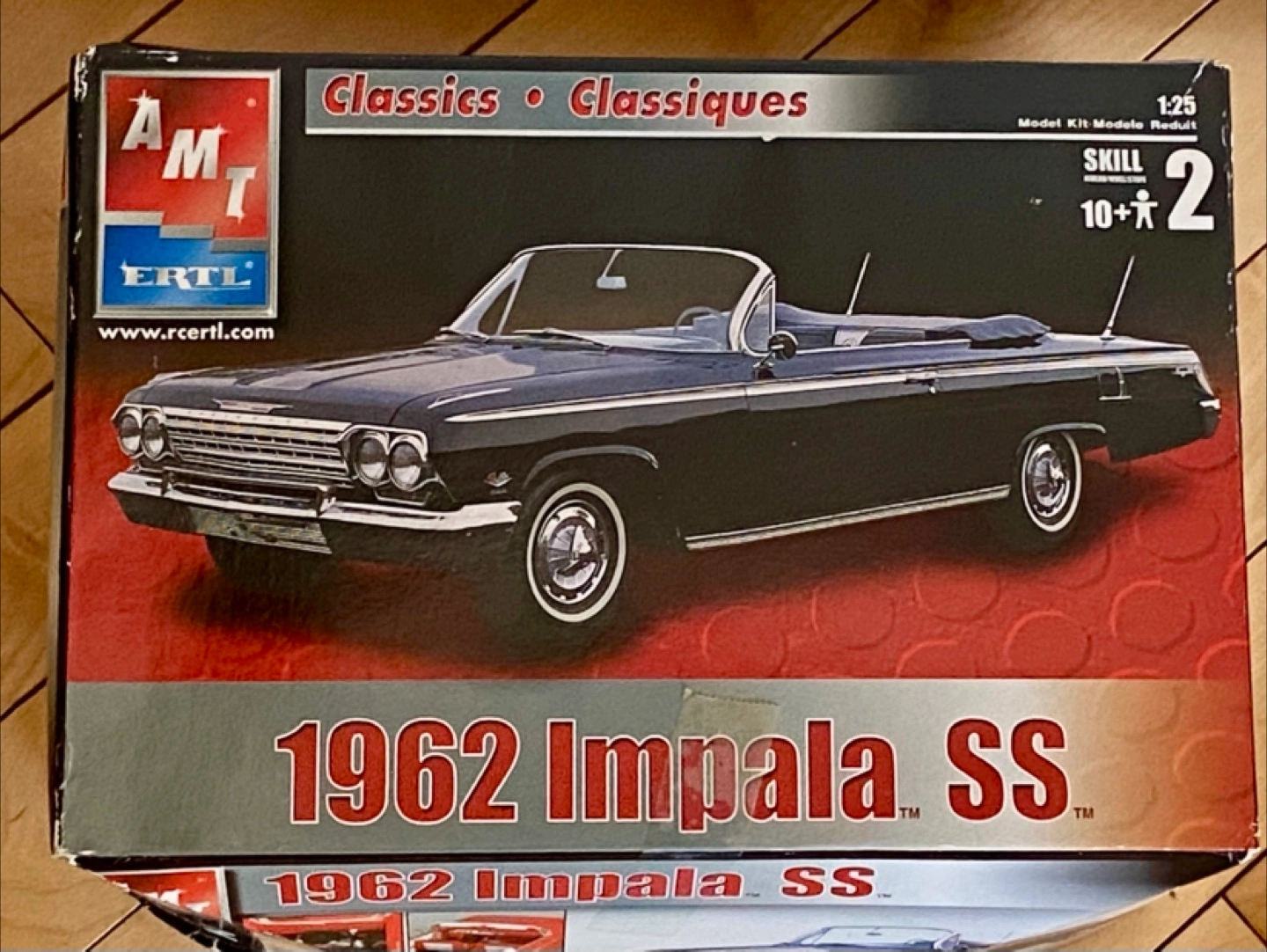 Selling a brand new AMT Classics 1962 Impala SS model kit! It's still in the original box and looks like it includes all the pieces and instructions. This model is skill level 2, recommended for ages 10+! Perfect for any model car enthusiast!