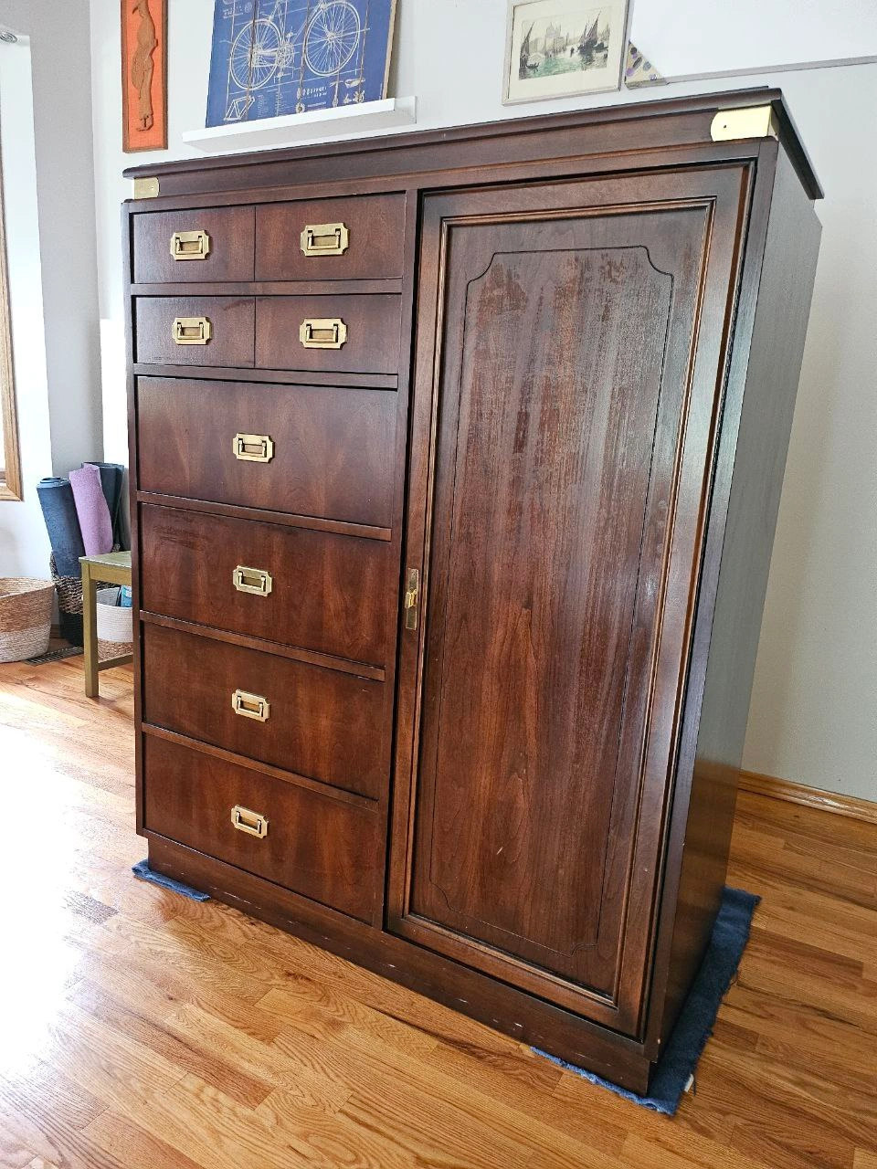 Solid wood armoire for sale, The armoire is in great condition with no scratches, but a couple of dings on the edges. It's never quite worked for our space. Pickup only from a smoke free, pet free home.