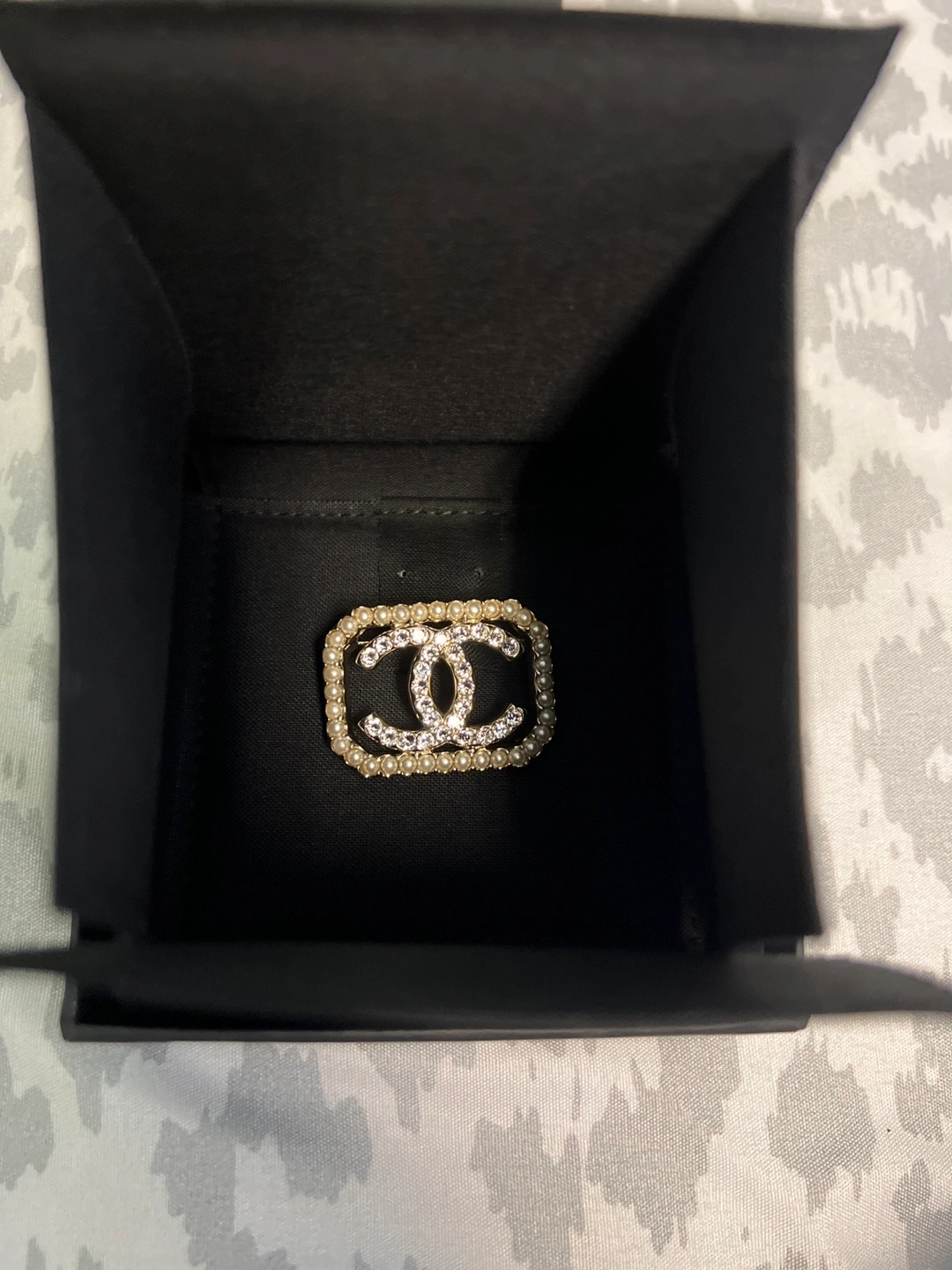 Selling a Chanel brooch that comes with its original box! The brooch features the iconic Chanel logo, surrounded by small pearls and sparkling rhinestones. It's in brand new condition and it will add a touch of elegance to any outfit. The Chanel box is also included for safe storage. Cash only and in person transaction. You must be Karrot ID Verified before meeting up.