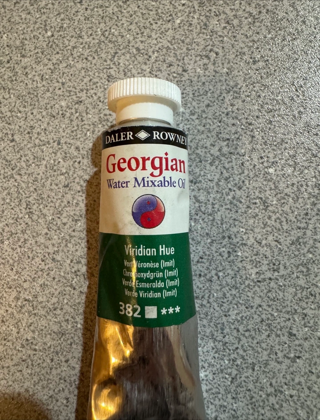 Selling a tube of Daler-Rowney Georgian Water Mixable Oil in Viridian Hue. The tube contains 37ml (1.25 US fl oz). Great for artists looking for quality water mixable oils! Opened and Used only 5ml!