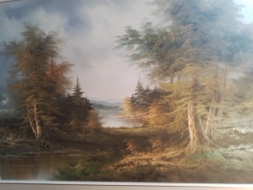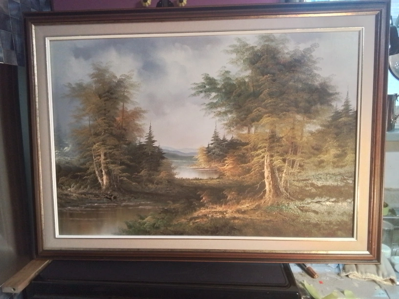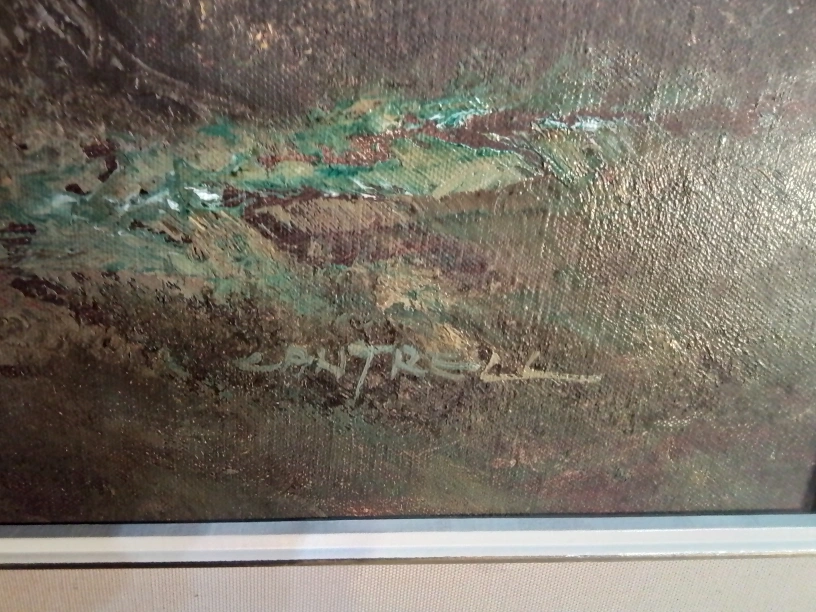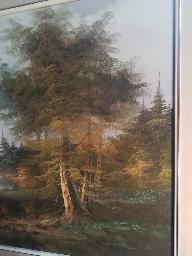 114Oil On Canvas Landscape Painting by Cantrell This is a beautiful oil on canvas landscape painting by Cantrell, capturing a serene scene of trees and water. The painting is in good condition and the frame complements the artwork beautifully. It's a piece that would add a touch of elegance to any room. Additional details: * Artist: Cantrell * Medium: Oil on canvas * Subject: Landscape * Framed Measurements 42.5 x 30.5 Yonge Street and Steeles Avenue