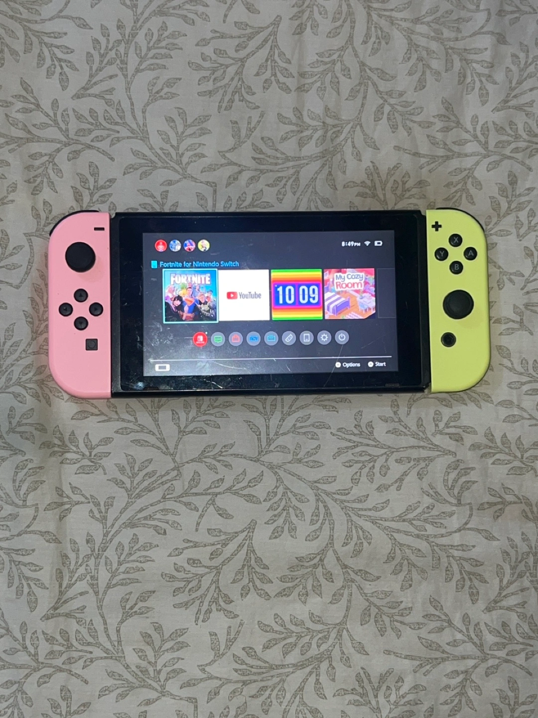 Selling a Nintendo Switch console with the unique pink and green Joy-Cons! It's in good condition and ready for a new home. Perfect for gaming on the go or at home on the TV