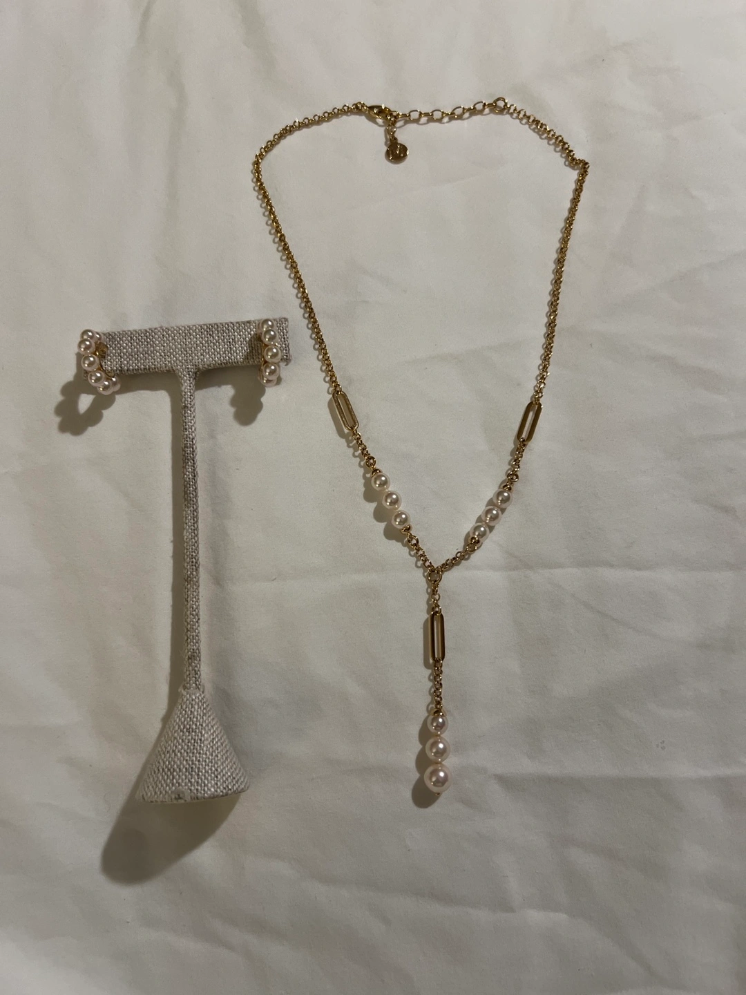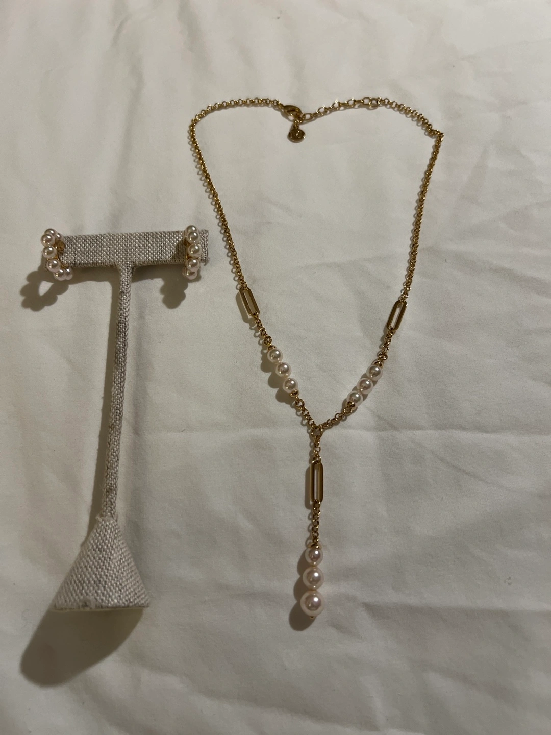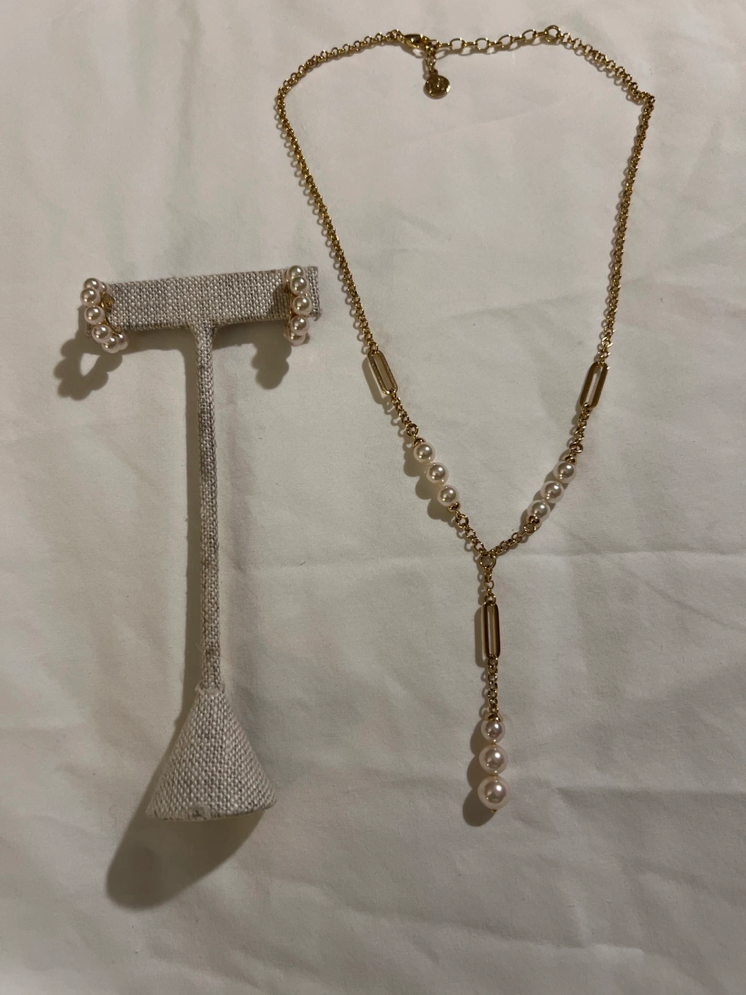Elegant Majorica necklace and earrings set! The necklace features a gold chain with pearl accents, complemented by matching pearl earrings. Perfect for adding a touch of class to any outfit
