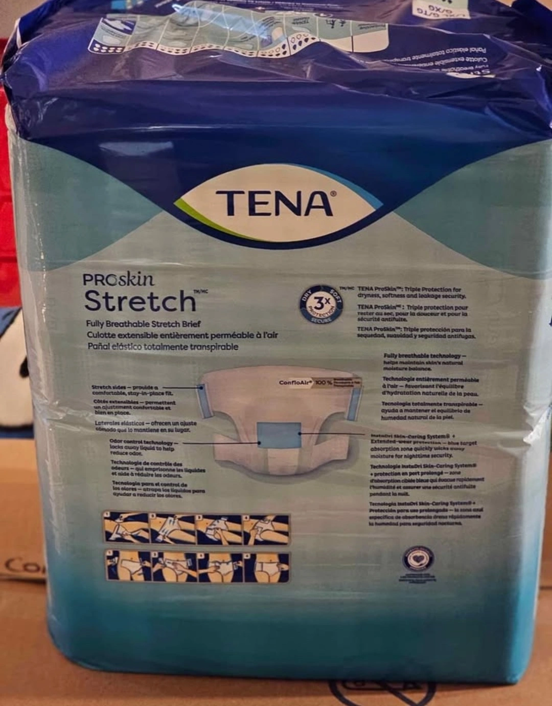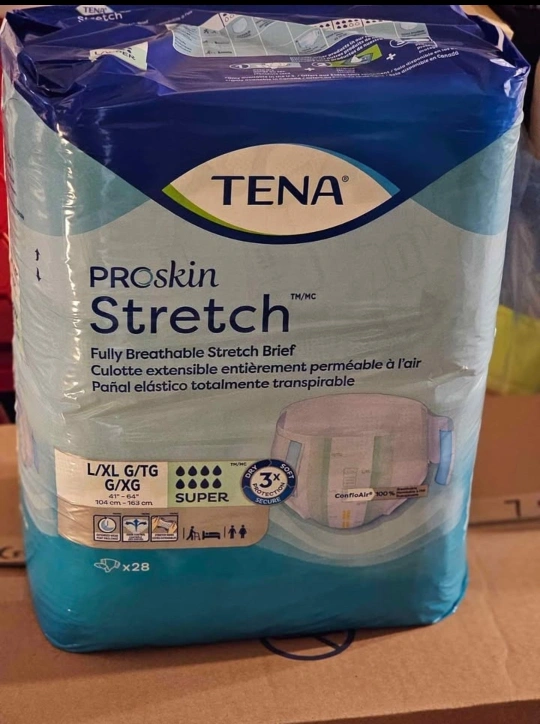 Selling TENA ProSkin Stretch briefs, size L/XL. These are fully breathable and designed for total transferability. The pack contains 28 briefs. Great for comfortable and secure protection!