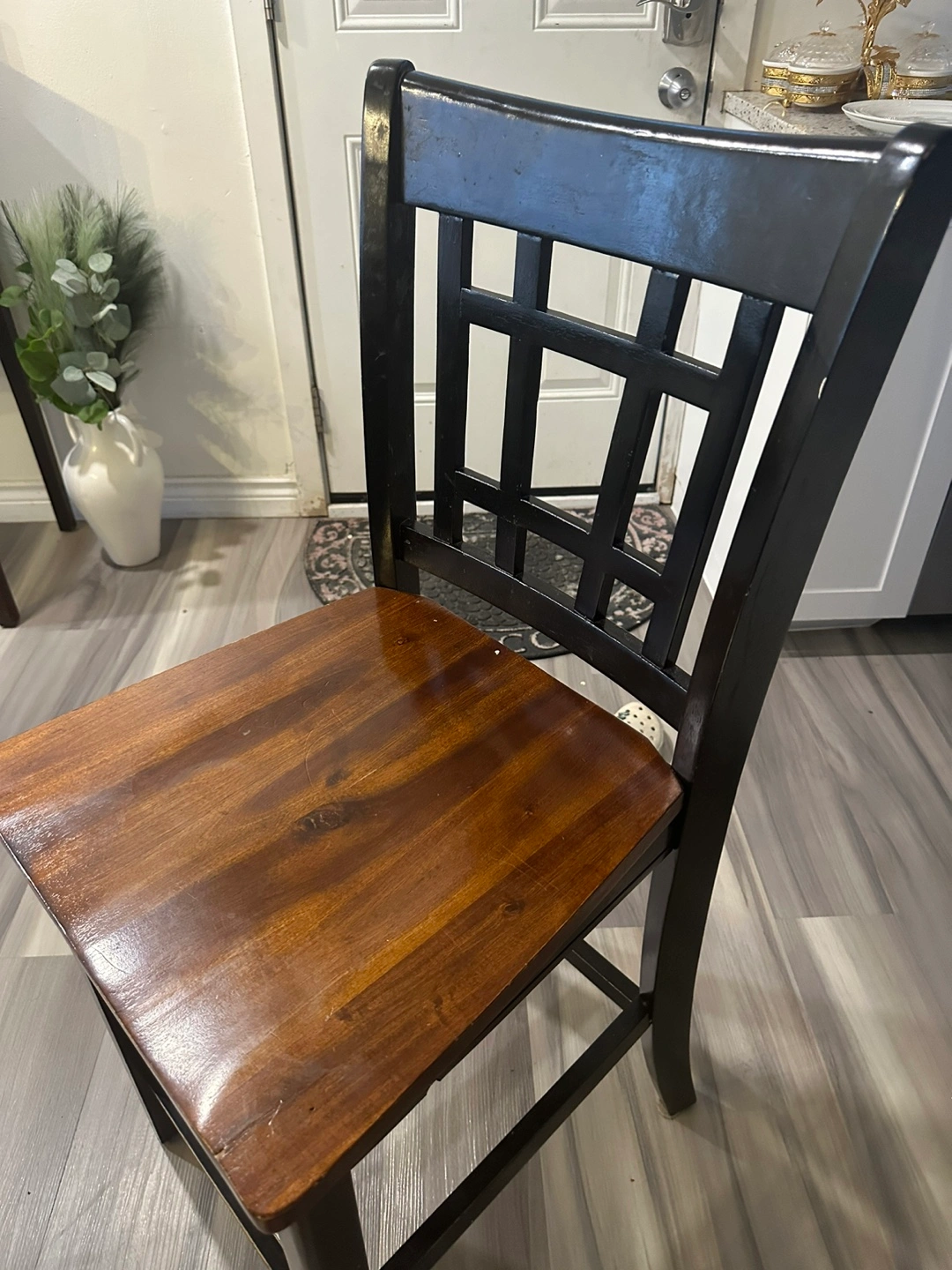 Selling a set of four wooden bar stools. They feature a dark wood finish with a classic design. Perfect for a kitchen island or bar area! They are in good condition and ready for a new home
