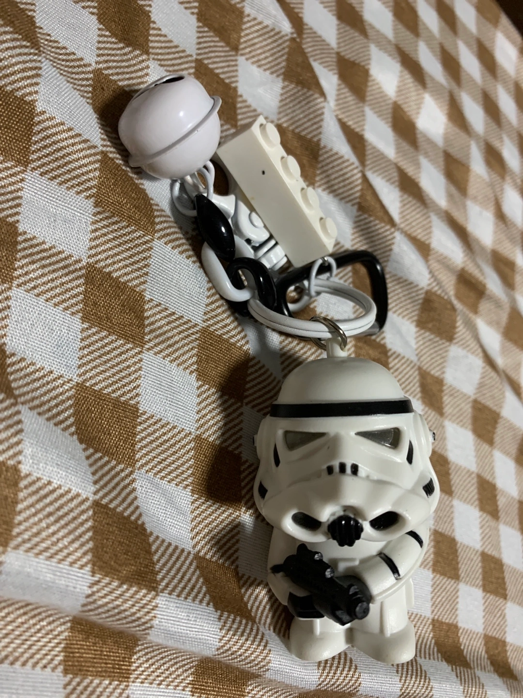 Selling a Star Wars Stormtrooper keychain! It's in great condition and features the iconic Stormtrooper design. Perfect for any Star Wars fan to add to their collection or use as a fun accessory